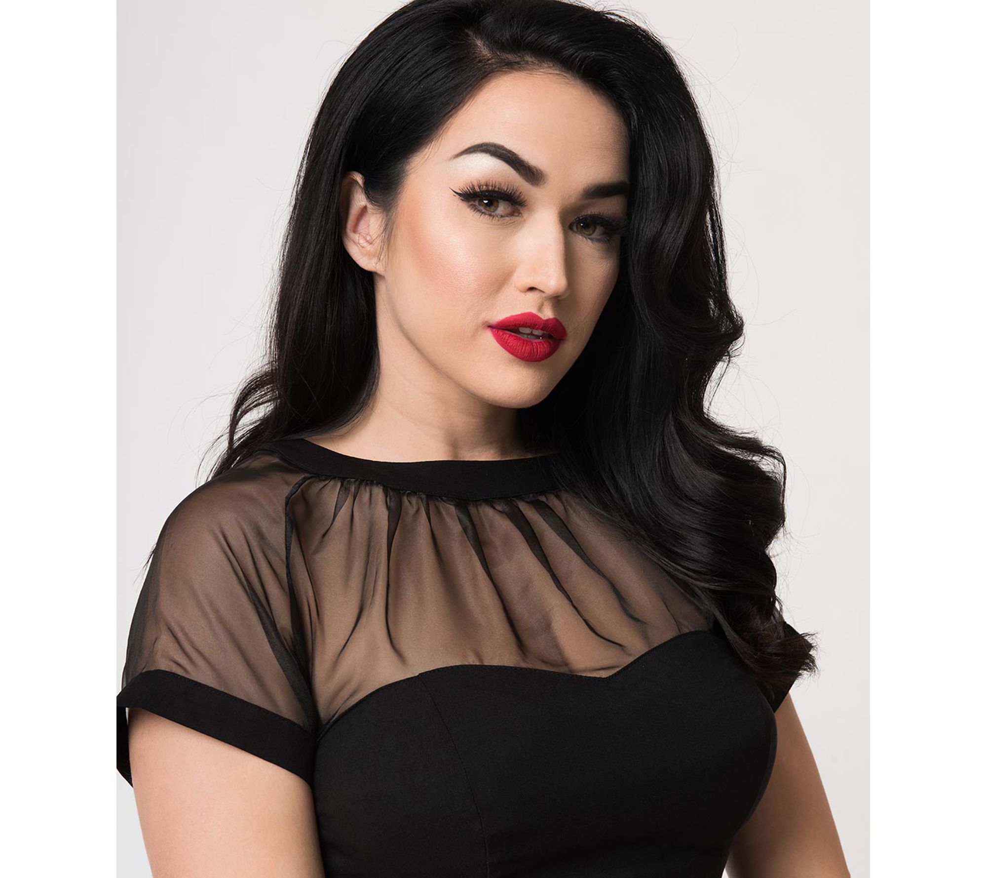 Unique Vintage 1950s Black Stretch Sheer BodiceShirelle Swing