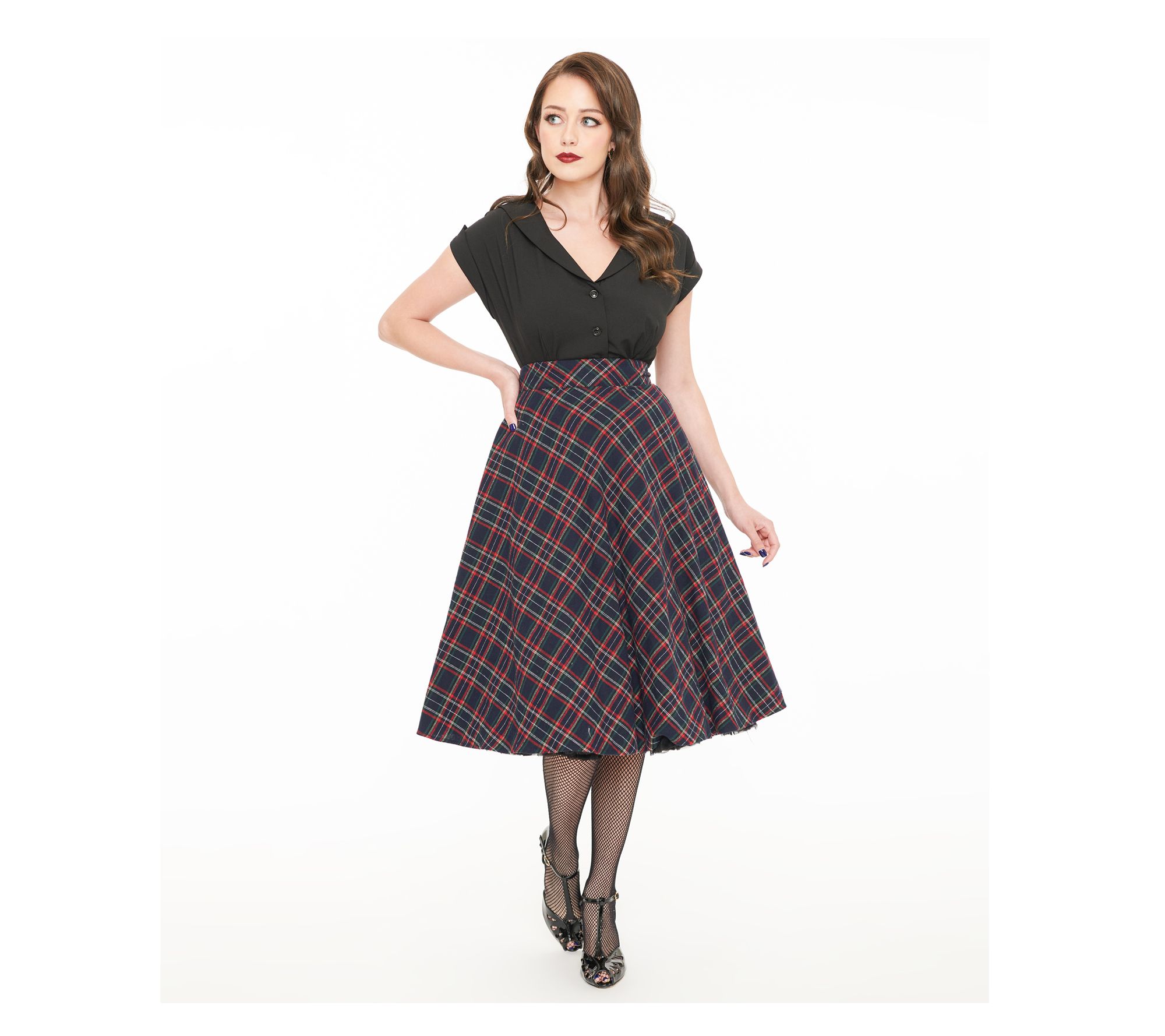 Channel the elegance of classic style with the Unique Vintage High Waist Vivien Swing Skirt. This 1950s-inspired piece features a flattering high waist and a flowing swing silhouette that embodies retro-chic glamour. Dress it up with heels and a tucked-in blouse, or keep it casual with a simple tee and flats.