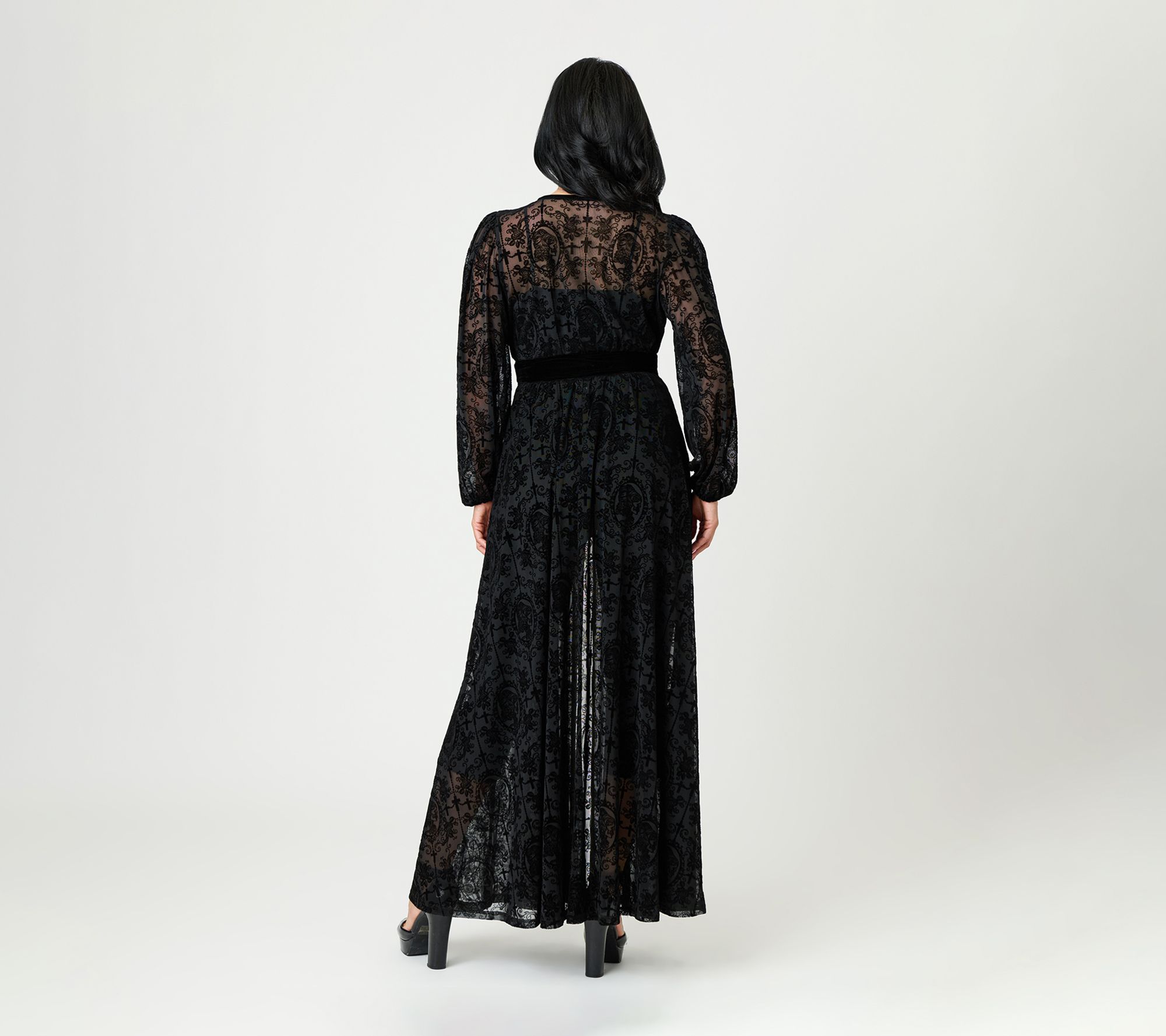 Unique Vintage Black Flocked La Caterina Hollywood Duster