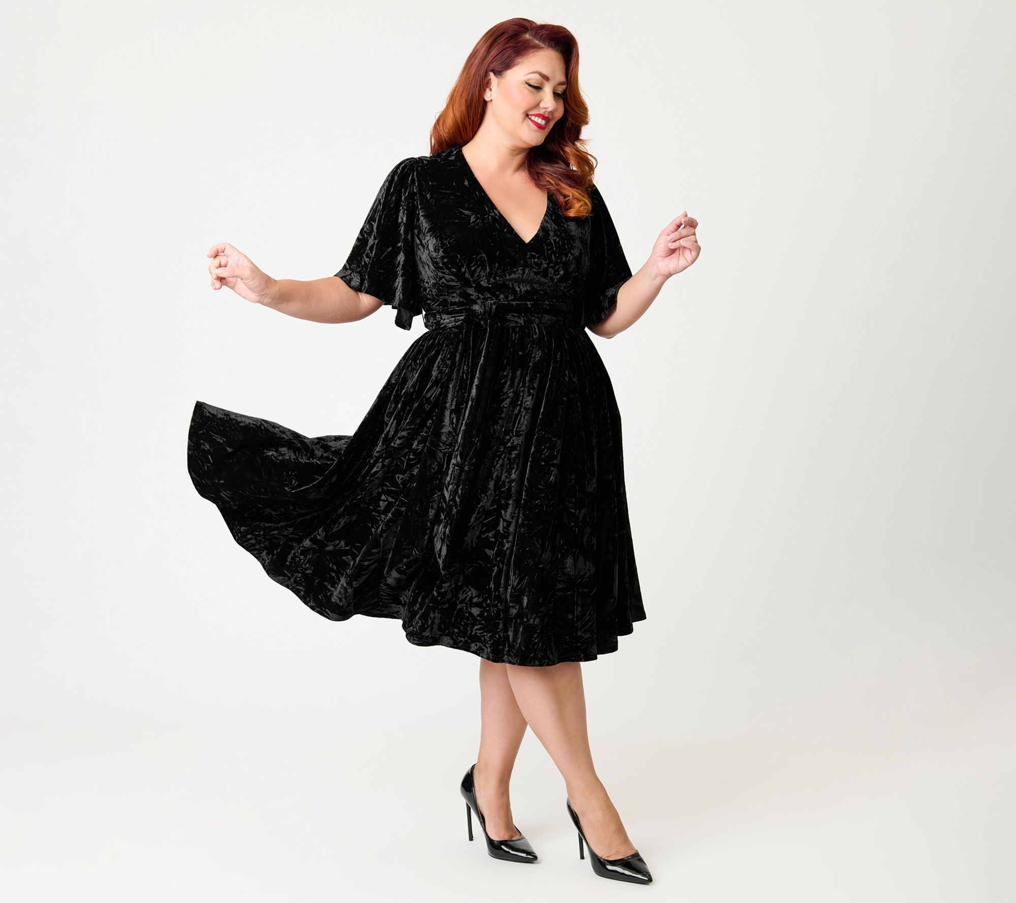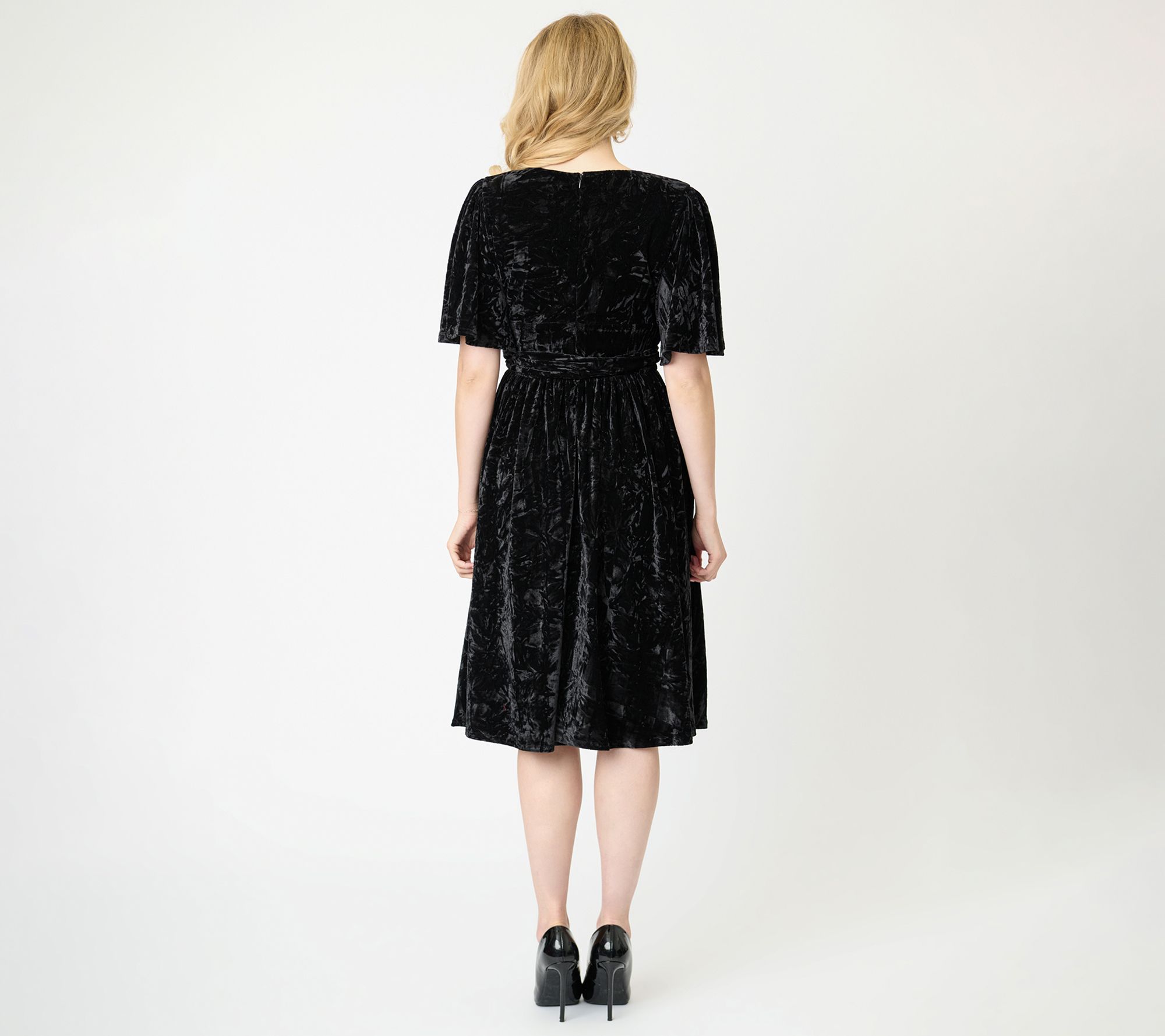 Unique Vintage Black Velvet Flutter Sleeve Lenora Swing Dress