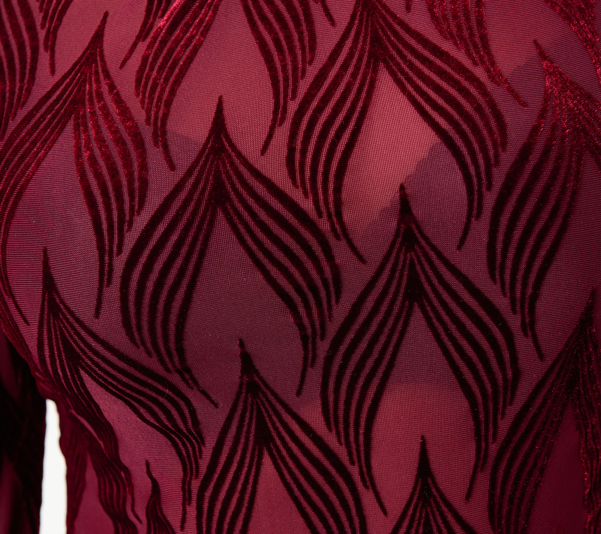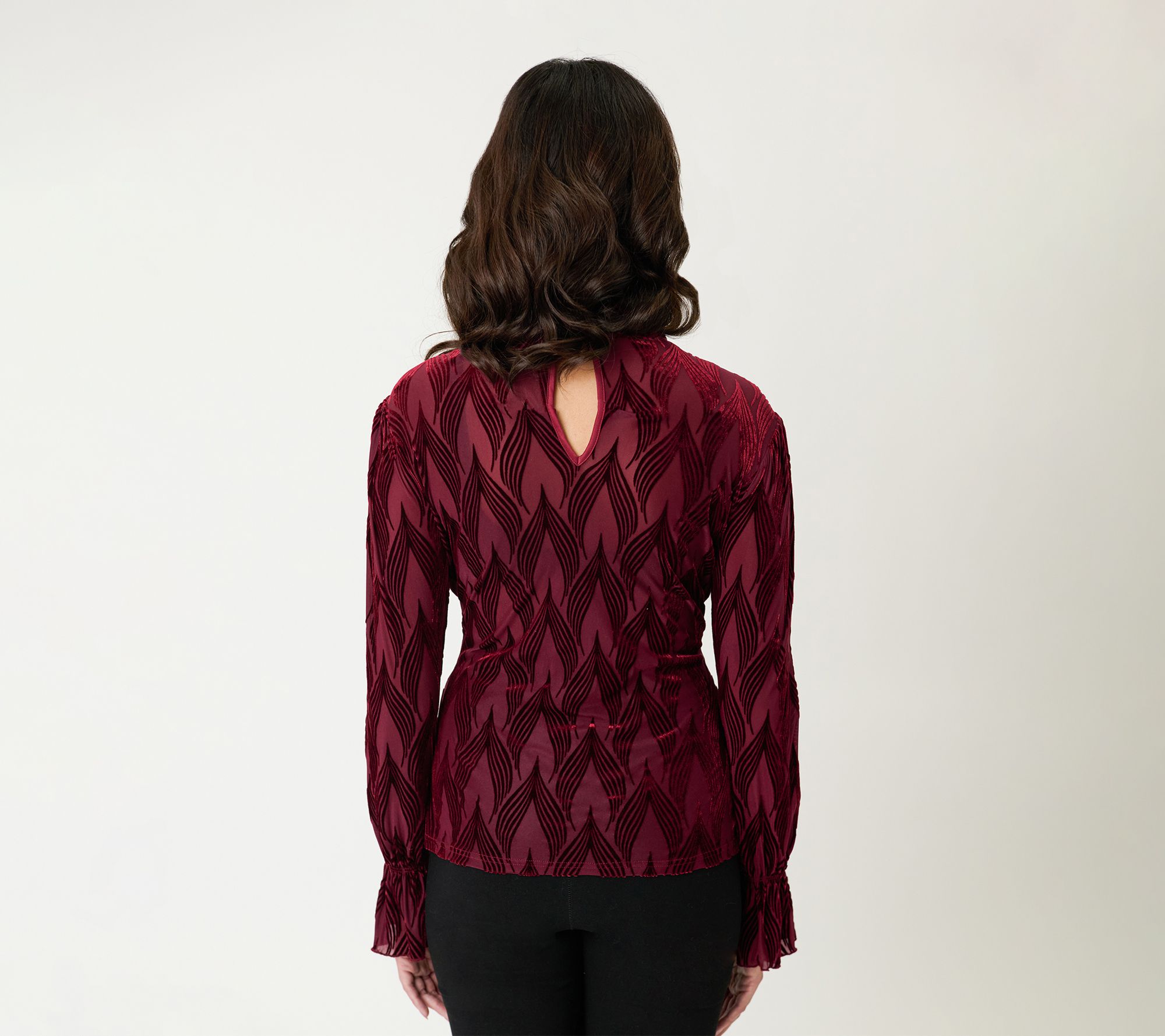 Unique Vintage Burgundy Leaf Velvet Burnout Donna Blouse