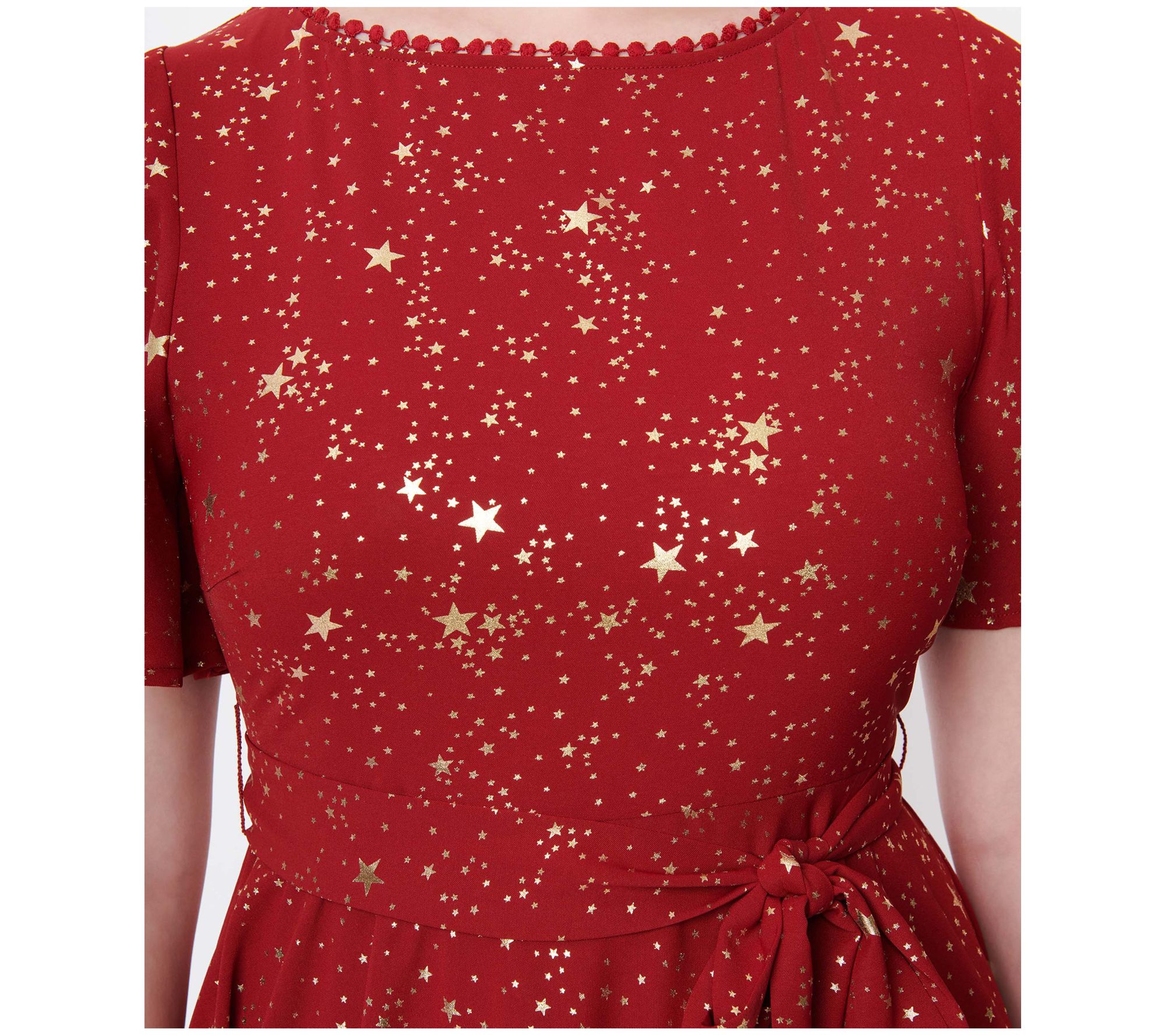 Unique Vintage Deep Red & Gold Star Swing Dress