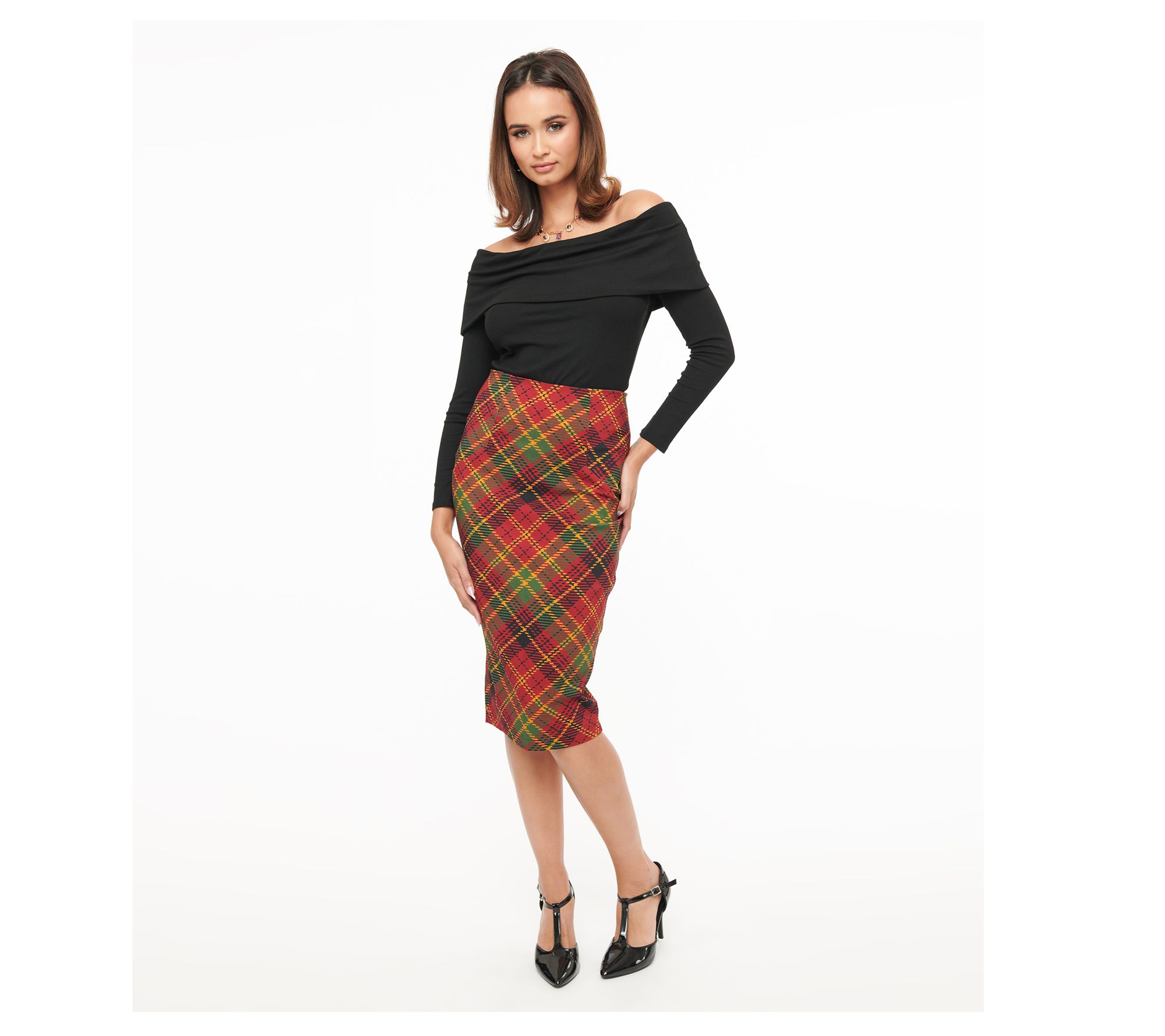 Unique Vintage Plaid Tracy Wiggle Skirt