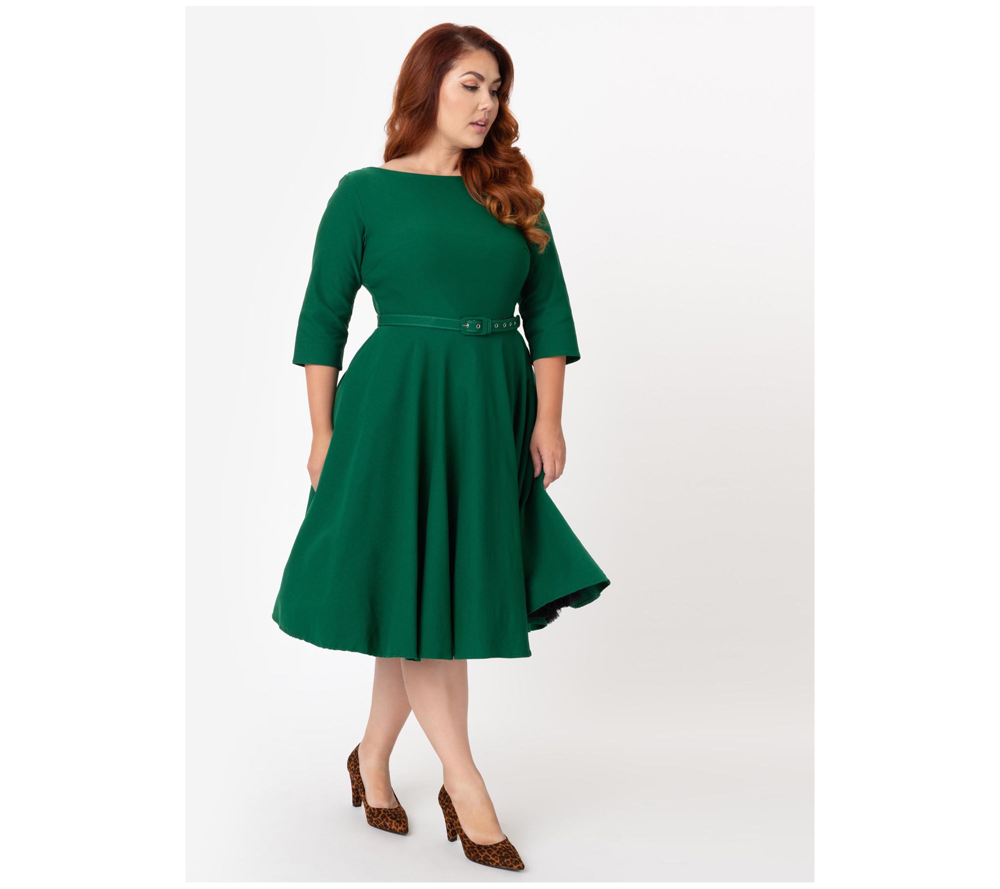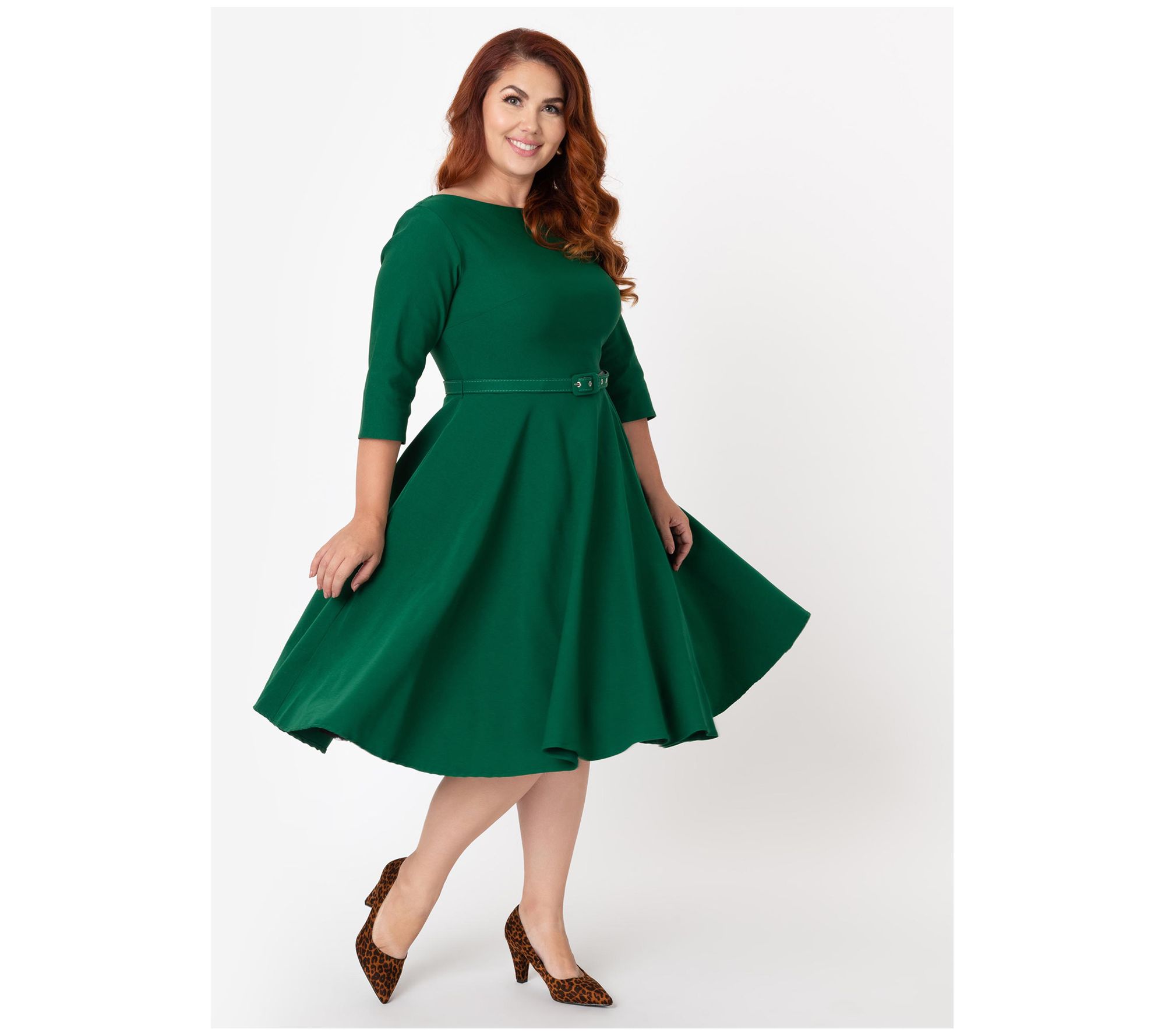 Unique Vintage Plus Size 1950s Style Emerald Green Stretch Sle