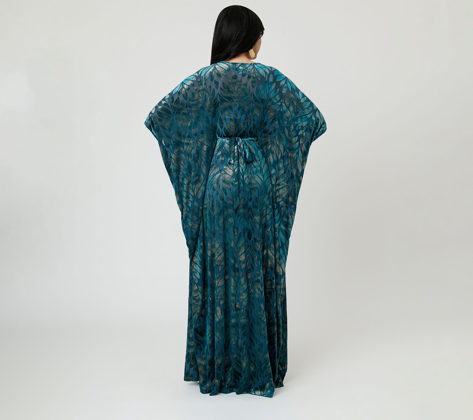 Unique Vintage Teal Leaf Burnout Burton Caftan