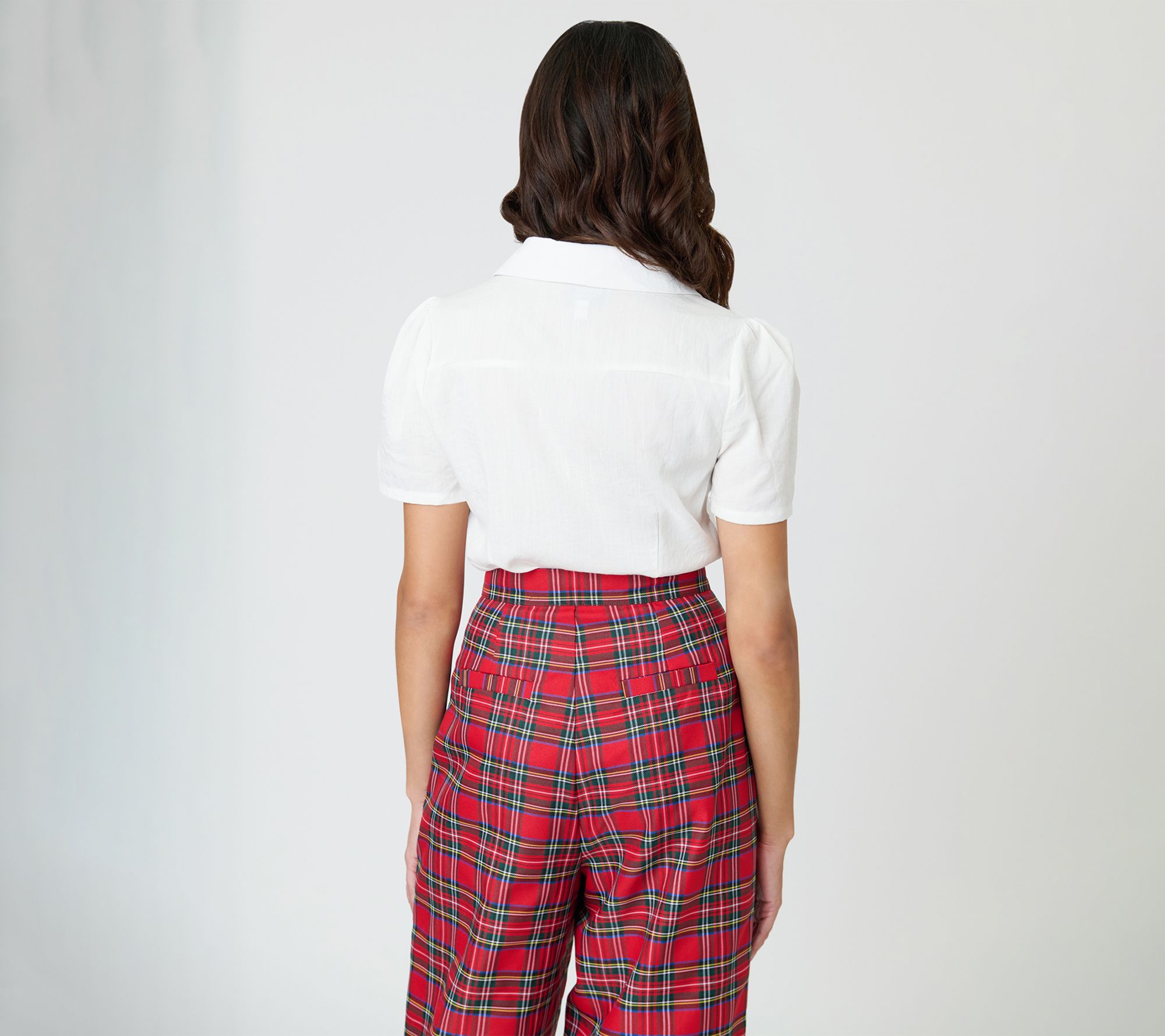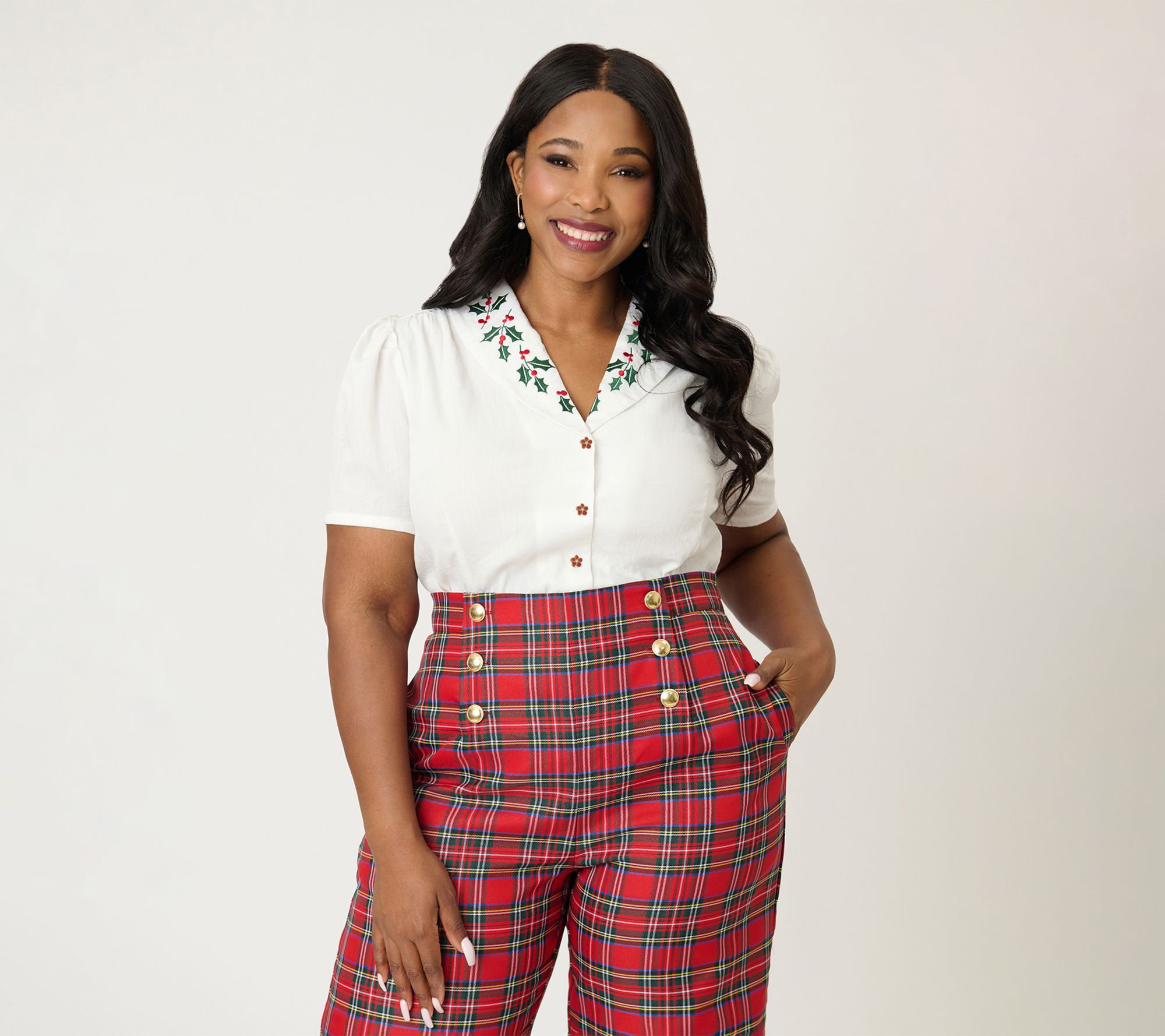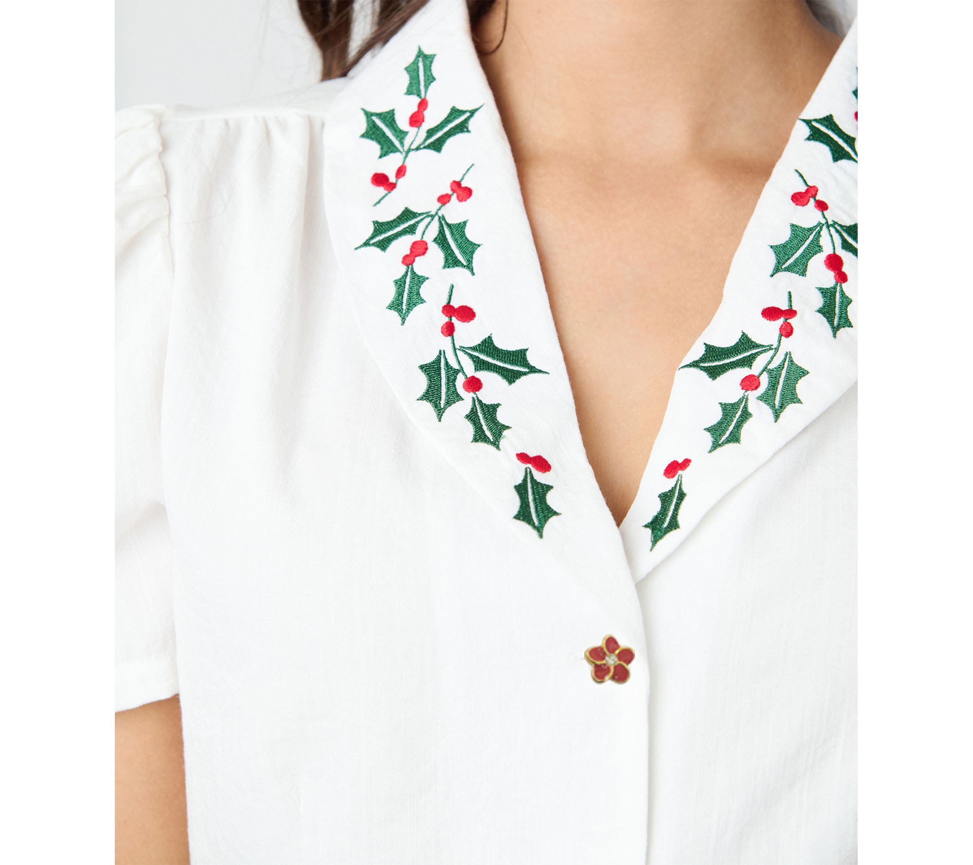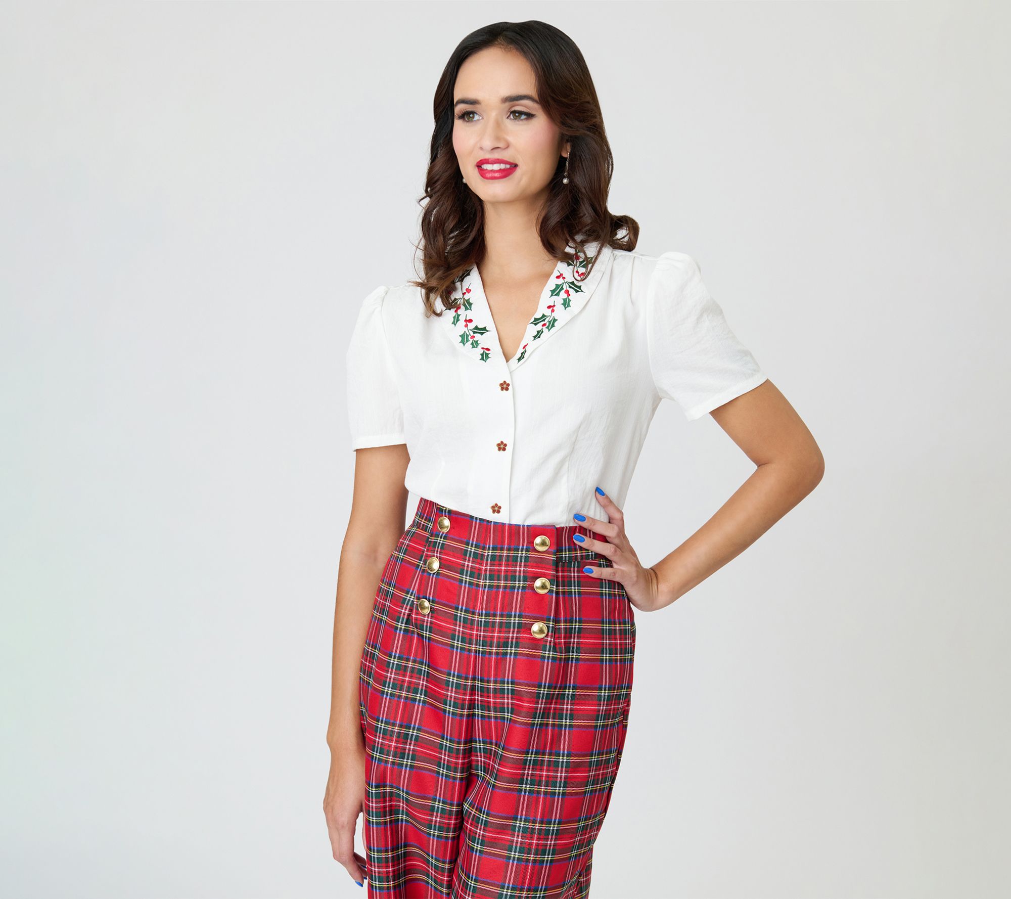 Unique Vintage White & Holly Embroidered CollarBlouse