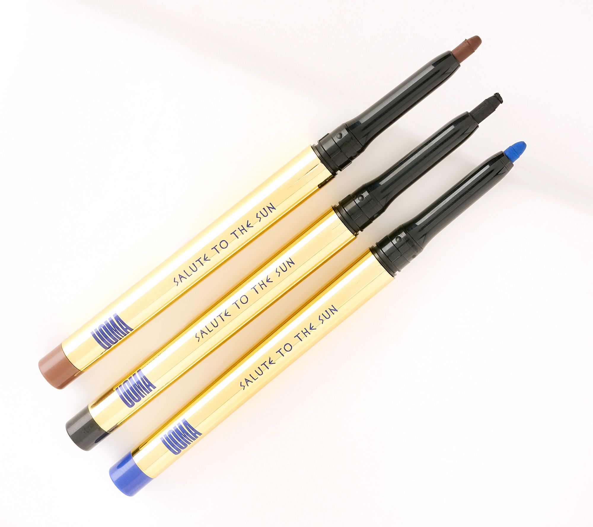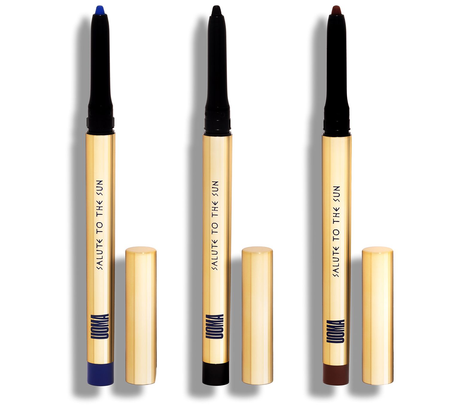 Natural definition or all-out drama, these Salute to the Sun eyeliners give you three retractable kohl eyeliners to create endless eye looks. From UOMA Beauty.