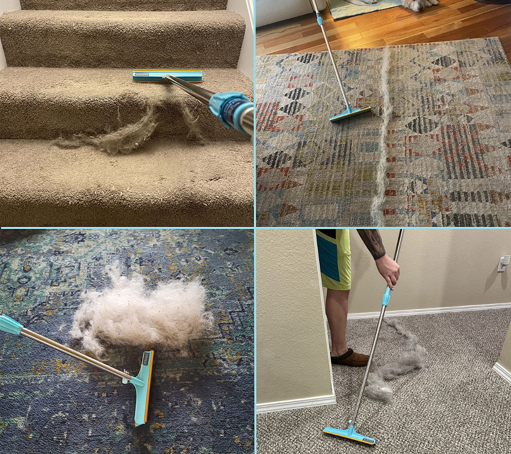 Remove pet hair and dander from cushions, car seats, and upholstery with ease using the Uproot Clean set of three all-purpose hair remover tools. From Uproot Clean.