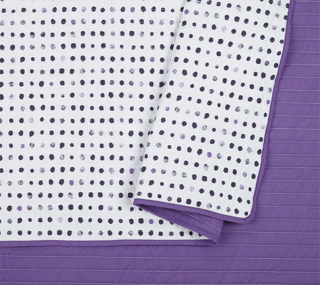 Bring whimsical style to your bedroom with this bright reversible polka-dot quilt. From Urban Playground.