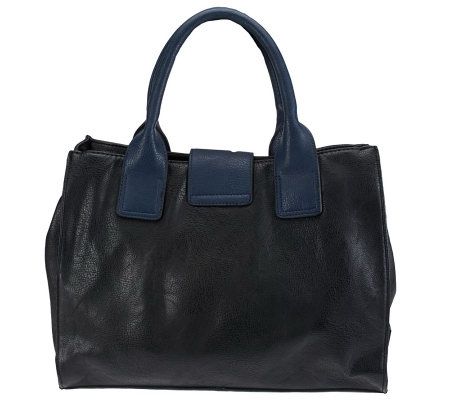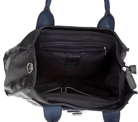 Exotic fun. Serpentine style comes to this vegan-friendly tote, adding a beautiful texture you'll love. Sleek turnlock hardware finishes off this roomy bag, which looks great at work or play. From V Couture.