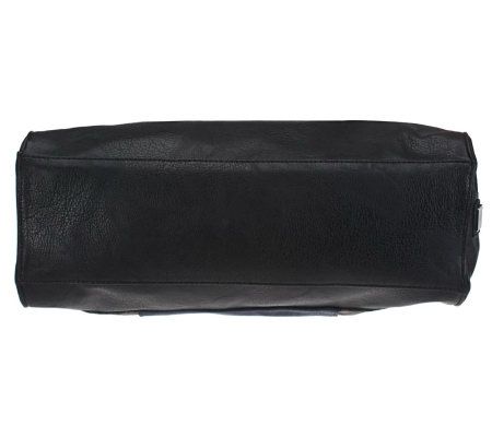 • Double handles; detachable, adjustable shoulder strap; deep front pocket; top-zip closure; turnlock hardware