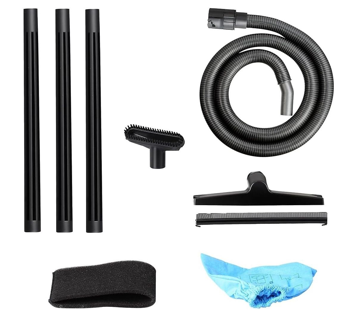 • Includes VOC507S vacuum, hose, extension wands, floorbrush/squeegee nozzle, three-in-one utility nozzle with brush and pet hair rake, reusable cloth filter, foam wet filter, and documentation
