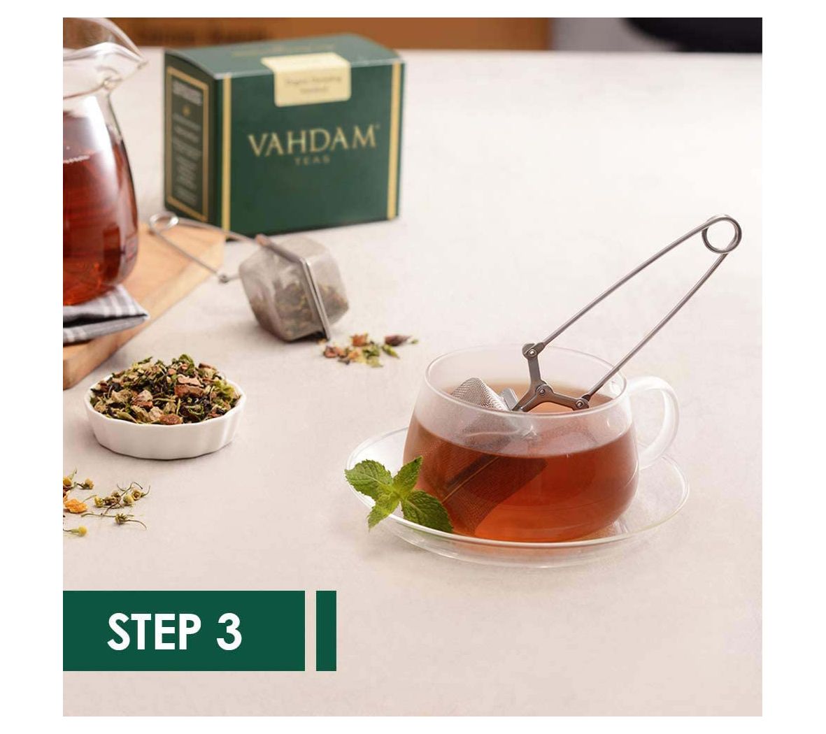 A must-have in your kitchen, this square-shaped stainless-steel fine mesh infuser serves as an easy-to-use steeper for loose tea. From Vahdam.
