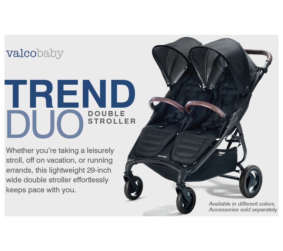 Adventure awaits with the Valco Trend Duo Side by Side Double Stroller! Perfect for errands, walks, day trips, and family outings, this super lightweight and foldable stroller makes maneuvering and storage a breeze. Independent reclining seats, extended canopies, and a variety of high-end features ensure that both infant and toddler children travel comfortably. From Valco.