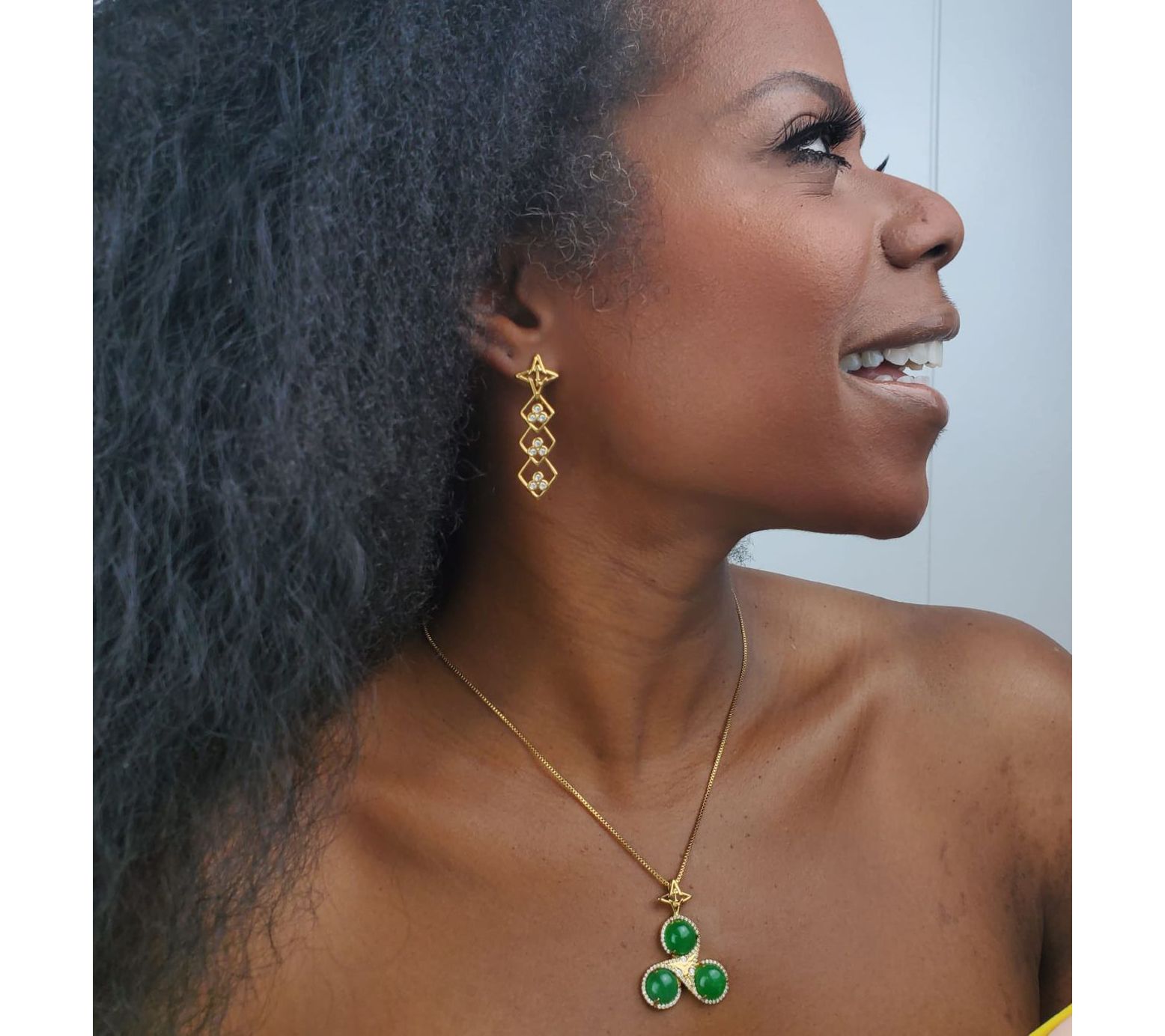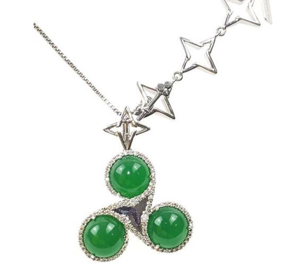 The key to her heart? This eye-catching pendant with gorgeous jade details at the center. From Valencia Key.