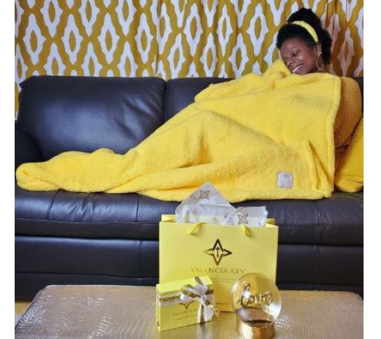 It's like wrapping yourself in soft, snuggly sunshine when you cuddle up under this bright yellow Hug of Light blanket. From Valencia Key.
