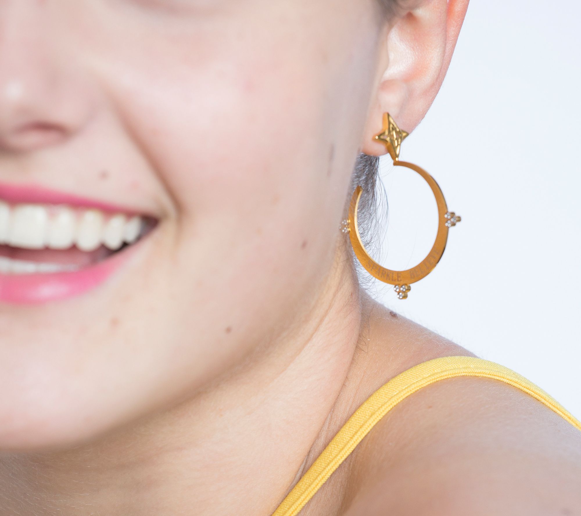Valencia Key believes joy is the practice of gratitude and the pursuit of courageously letting your inner light shine. These crystal-accented hoops are a physical reminder to continue to find joy in your life -- and a beautiful accessory to wear every day. From Valencia Key.