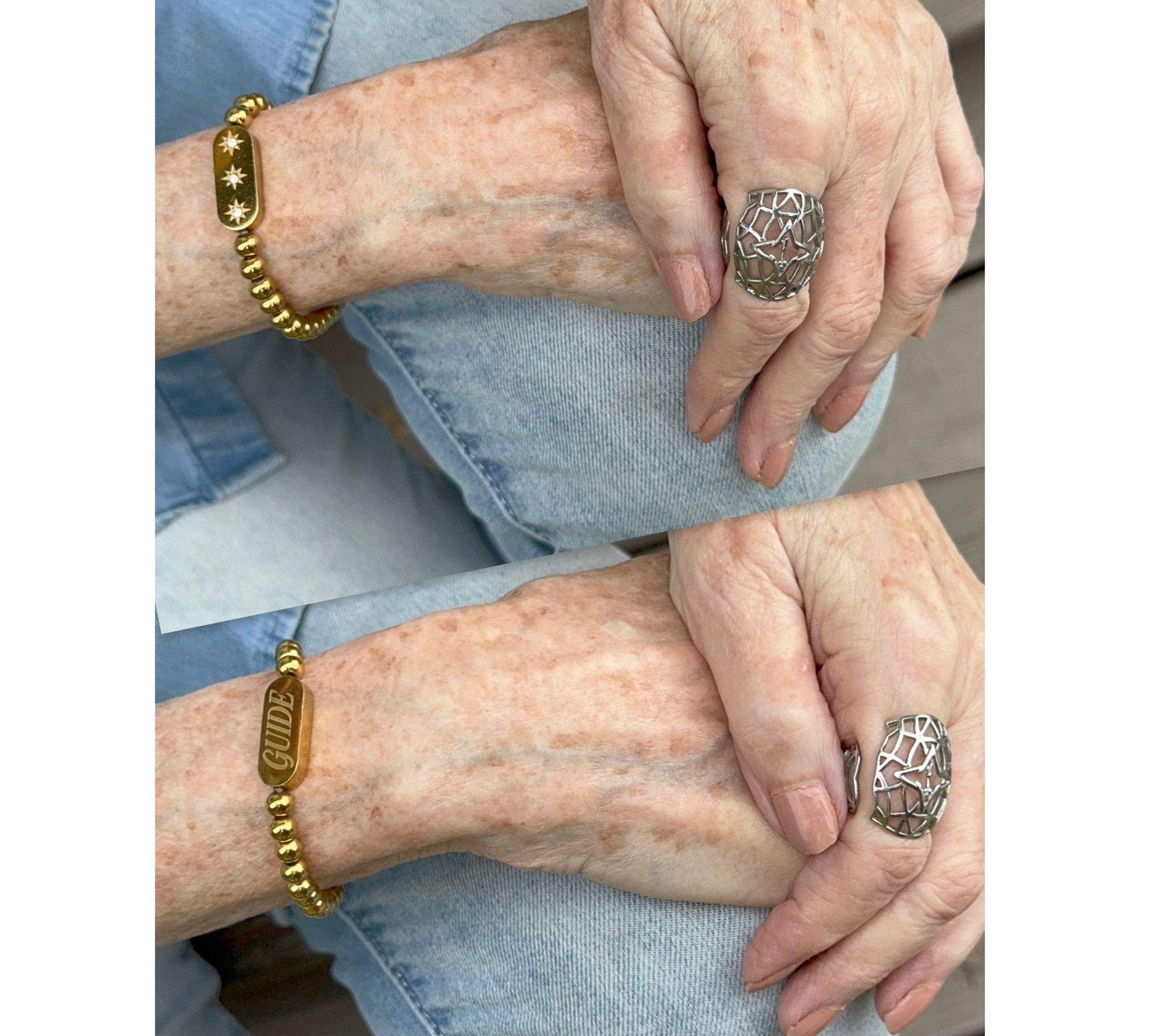 Let a trio of sparkling stars and the guiding message on this beaded stretch bracelet add daily encouragement to your routine. Inspired by Jane Treacy's loving father, Rudy, who followed the stars to guide him home, the thoughtful heart charm reading "Look Up" and signature star beads offer a mindful reminder to let light guide your journey, making it a meaningful addition to your wrist stack or a delightful gift for someone very special. From Valencia Key x Jane Treacy.