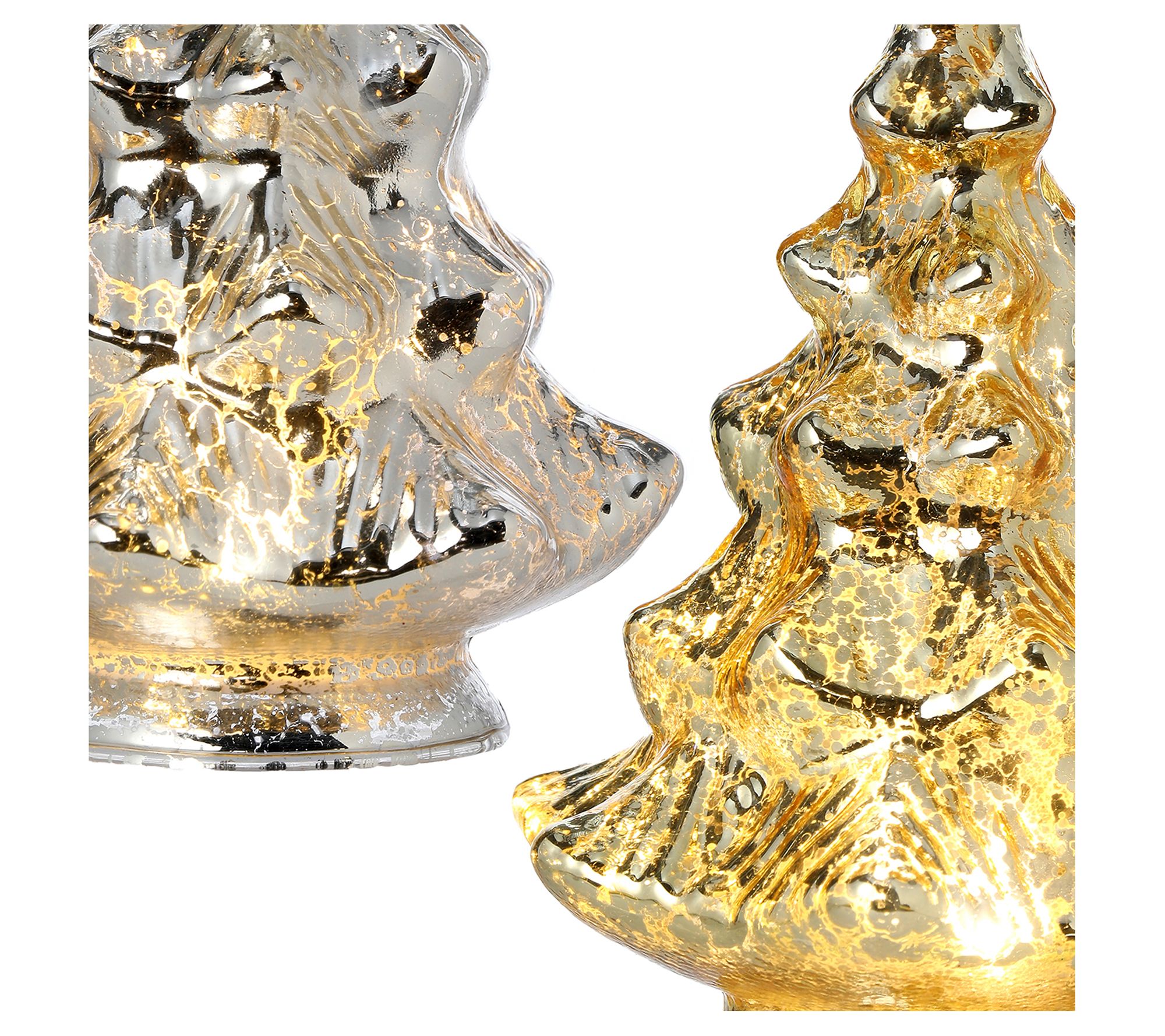 Bring a touch of nostalgia and elegance to your holiday display with this pair of trees, each featuring a mercury-glass look that illuminates from within. From the Valerie Parr Hill Collection.