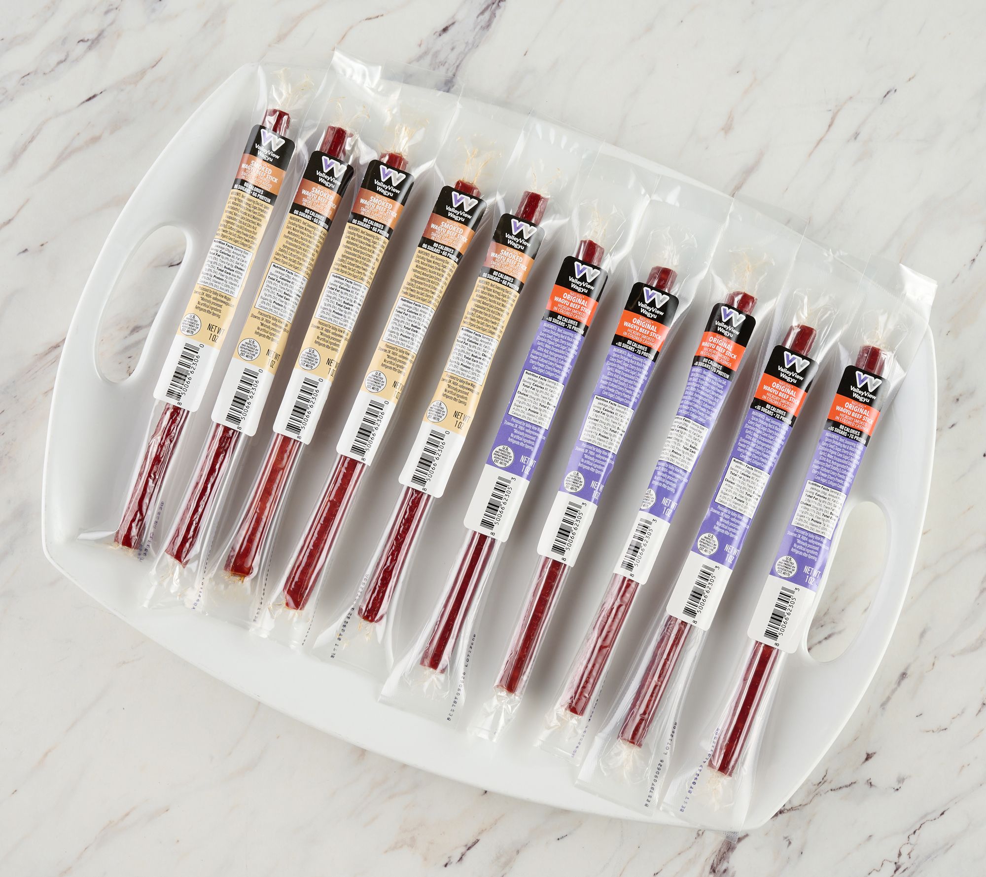 Snack time gets an upgrade with these Wagyu beef sticks, crafted by a family-owned ranch in Oklahoma for delicious flavor and meaty satisfaction. Tuck them into lunchboxes, toss them in a gym bag, or keep them on your countertop for in-between-meal munching -- each bite delivers a true taste of Wagyu with your choice of original or smoked varieties. From Valley View.