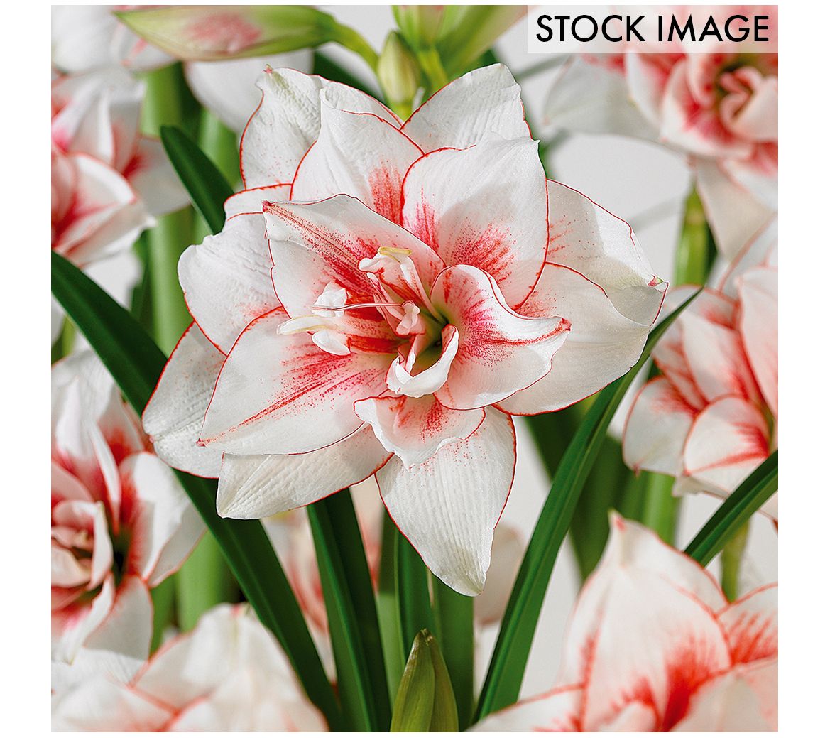 Fill your home with the incomparable brightness of Amaryllis flowers. Grown from a bulb and easy to care for, this tropical plant blooms in winter with flowers that can grow up to 8" across. Able to grow indoors year after year, the Elvas flowers are white with bright red dots. From Van Zyverden.