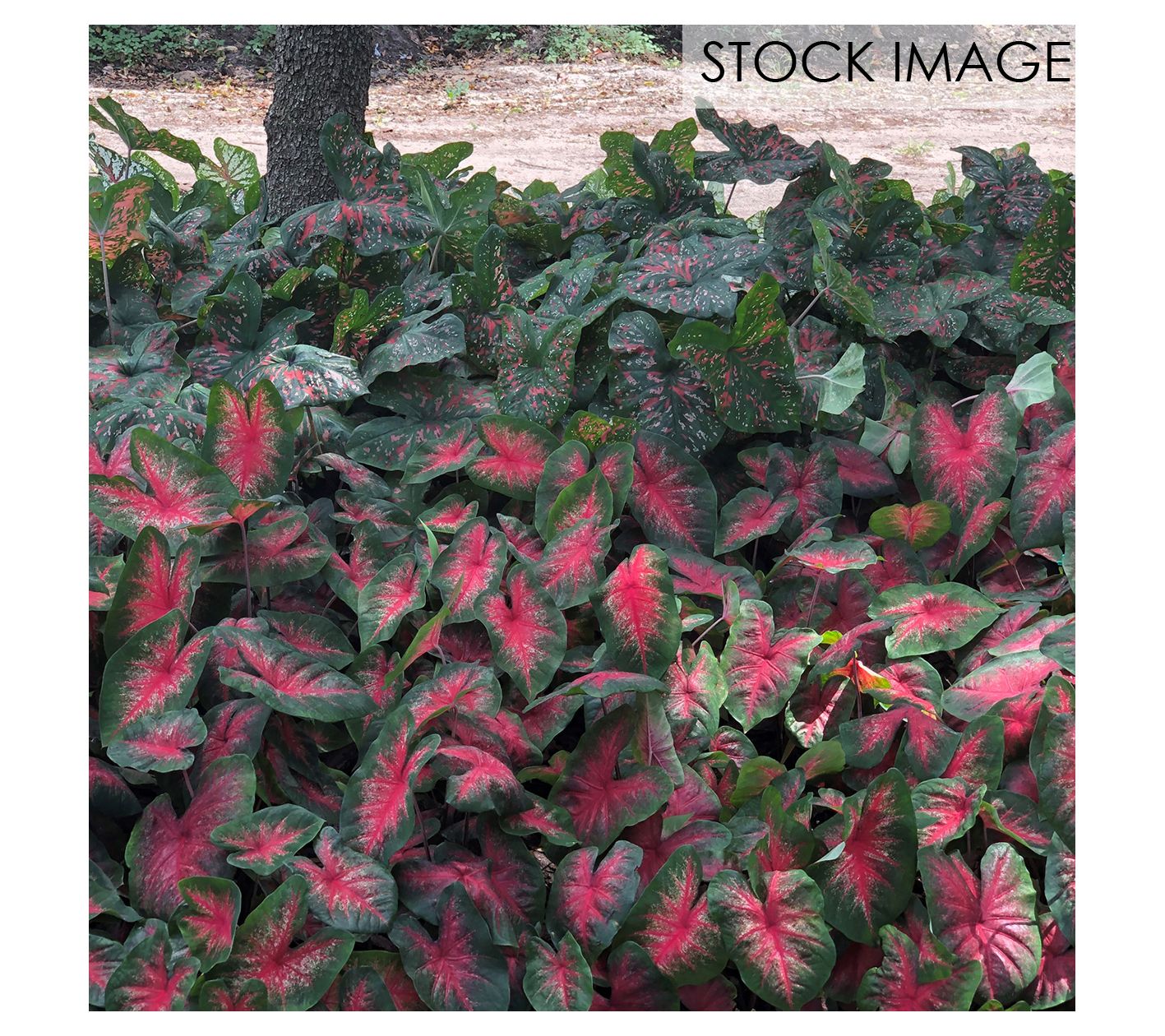 Add tropical charm to your garden with these vibrant caladium bulbs that offer a pop of color in full sun or shade. Their intensely red leaves with deep blue-green margins create a beautiful contrast that's perfect for garden grouping. From Van Zyverden.