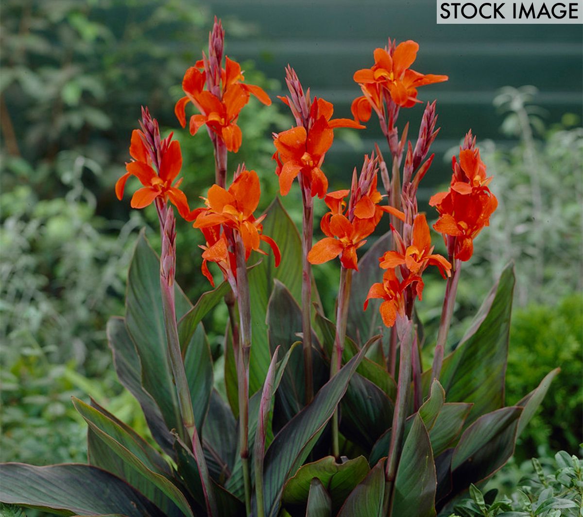 This set of colorful Cannas give your garden a touch of the tropics with vibrant flowers, ruffled spiked stalks, and prominent leaves at the base. From Van Zyverden.