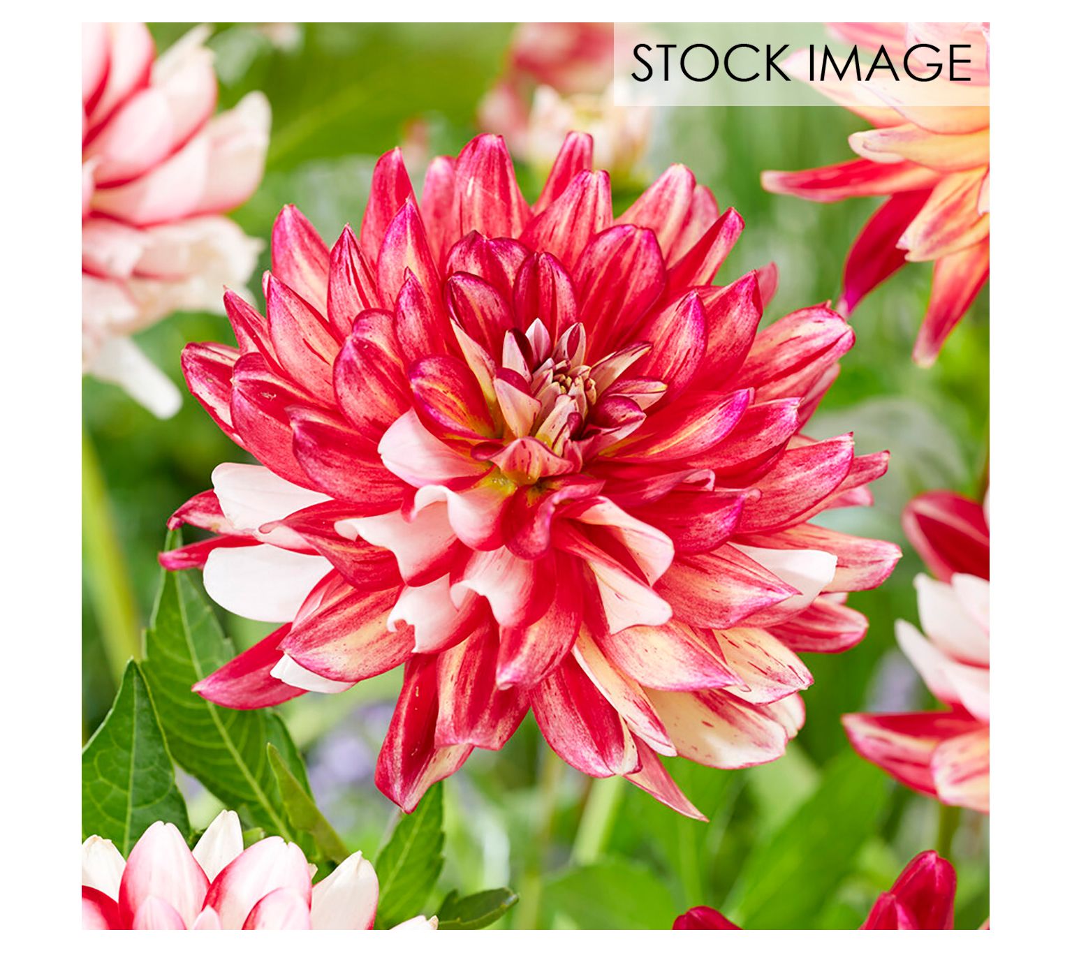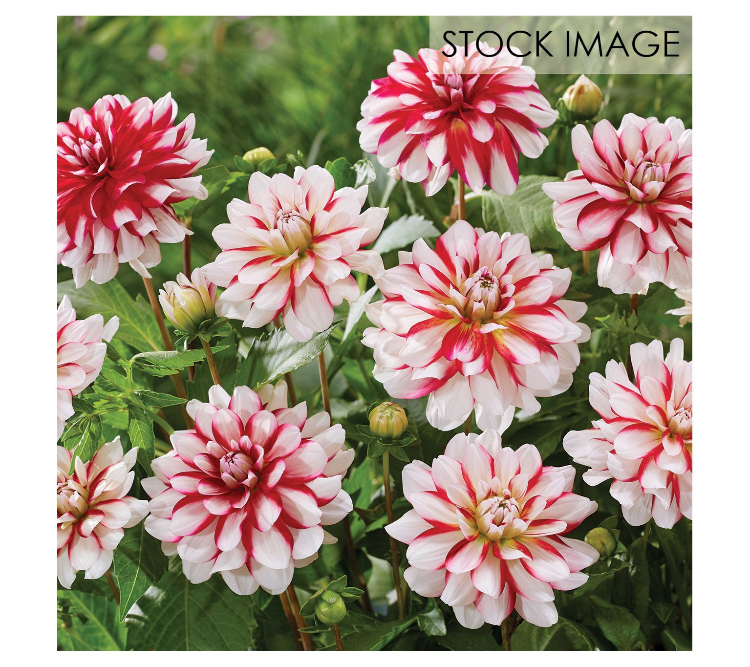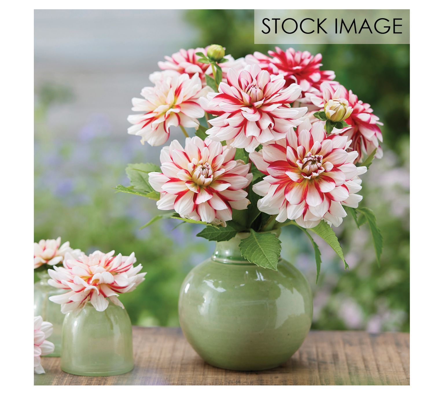 Nature's artistry is on full display with these Short Track Dahlias, featuring lush green foliage and vibrant blooms showcasing an almost painted look. From Van Zyverden, Inc.