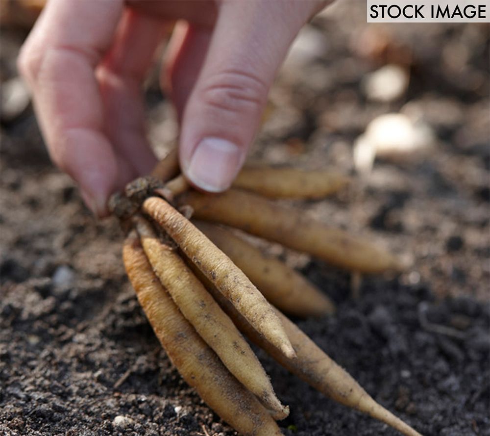 • Shipped as: root; 16" decorative rattan planter with hard-shell inner plastic growing pot; bag of medium planting stock; gardening gloves