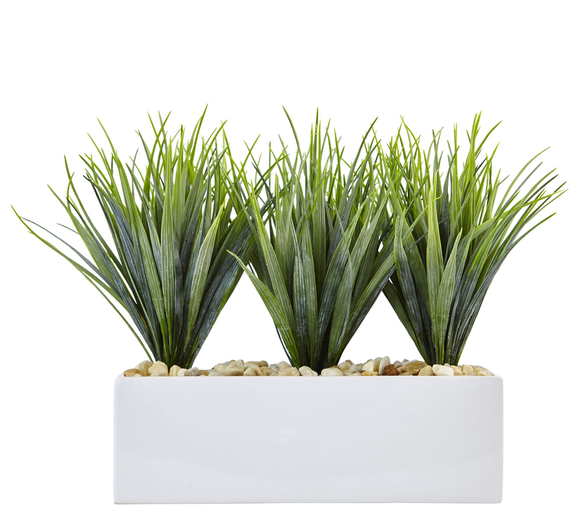 Aligned in a simple yet elegant formation, this lifelike vanilla grass looks fabulous in its planter. From Nearly Natural.