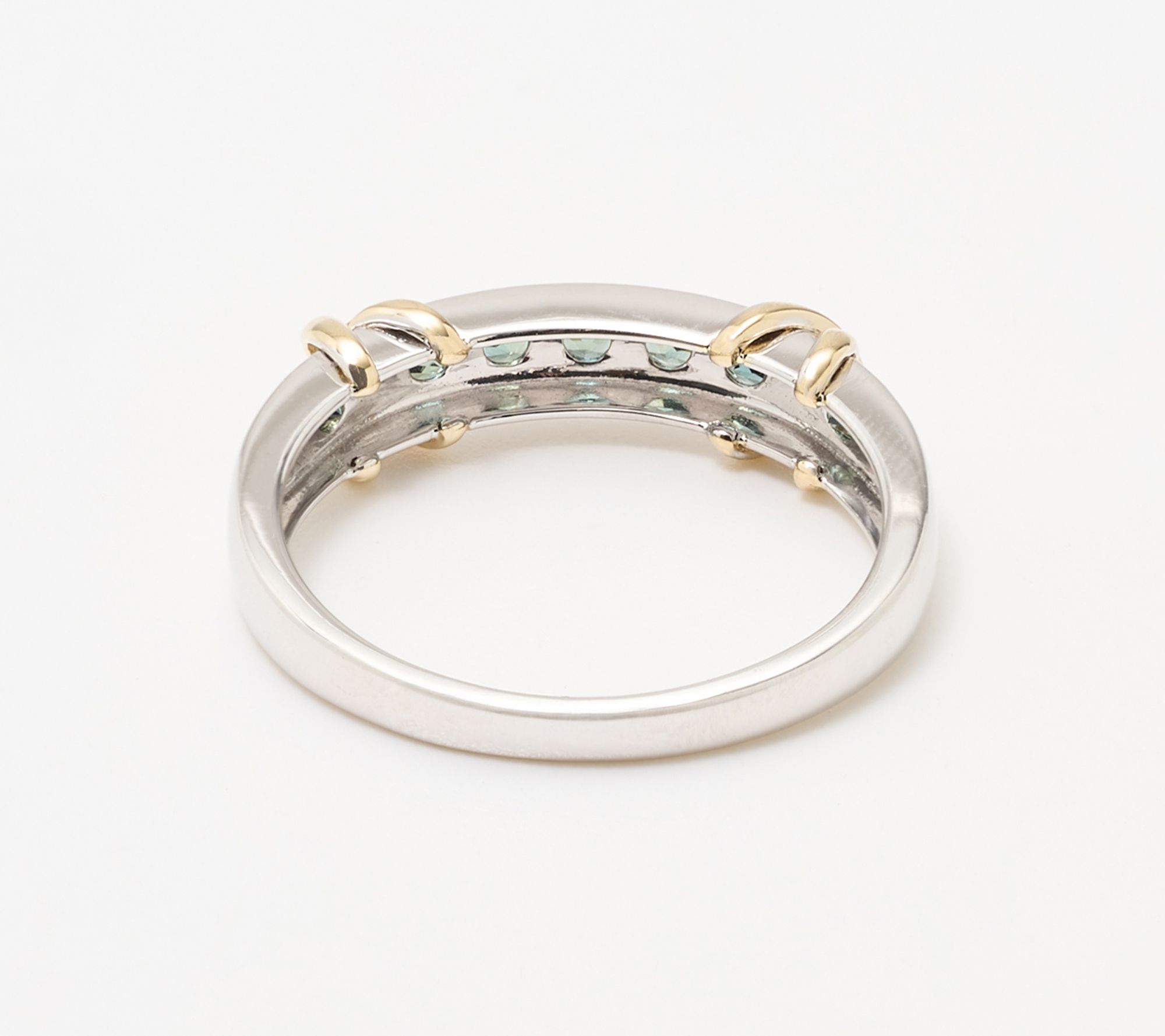 Vibrant teal blue sapphires add a pop of enchanting color to this channel-set ring crafted in a blend of 14K yellow and white gold. The sophisticated X-pattern design is ready to shine through every occasion, making it a versatile accent for adding elegance to your weekday favorites or an elevated night out. From Vault Discoveries.