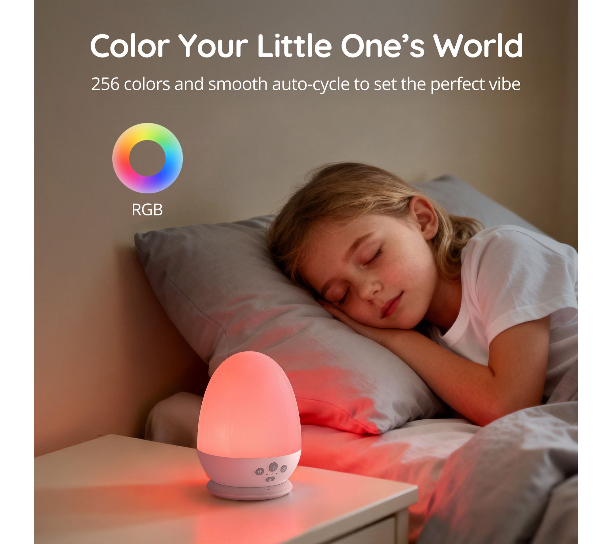 • RGB mood lighting offers 8 vibrant colors plus auto-cycle mode for kids' rooms or relaxation