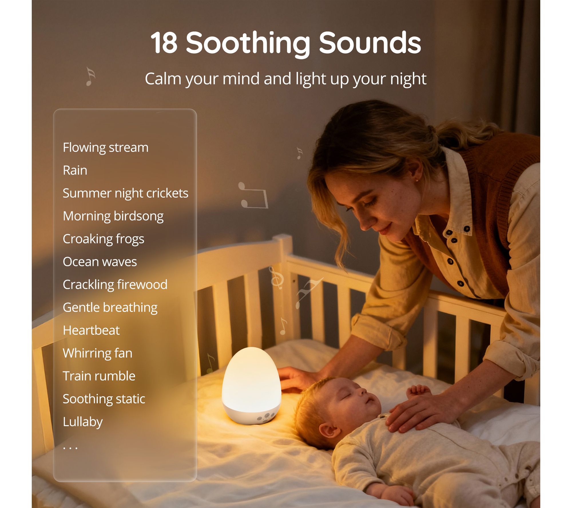 • White noise machine provides 18 soothing sound options