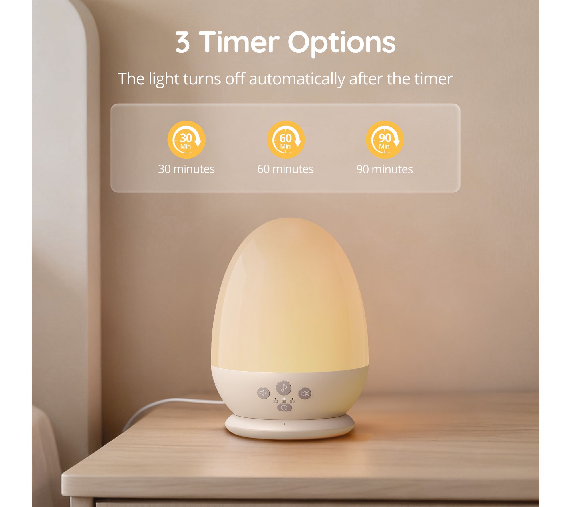 • Features auto-off timer with 30/60/90 minute shutoff for bedtime routines and battery saving