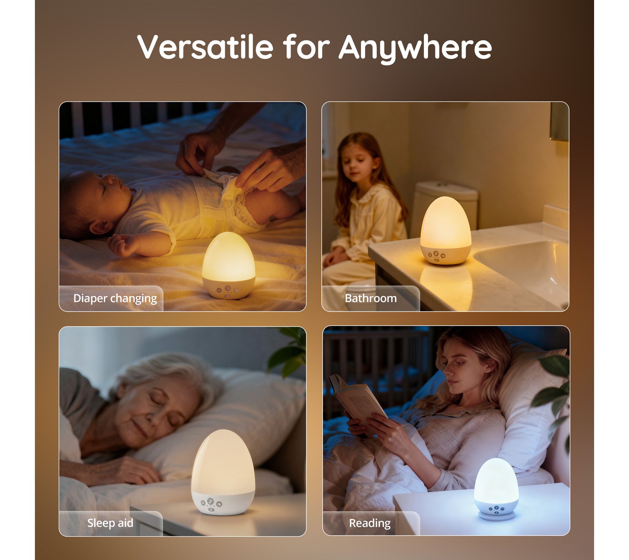 • Adjustable color temperatures from warm to cool white for nursing, reading, or cozy nights