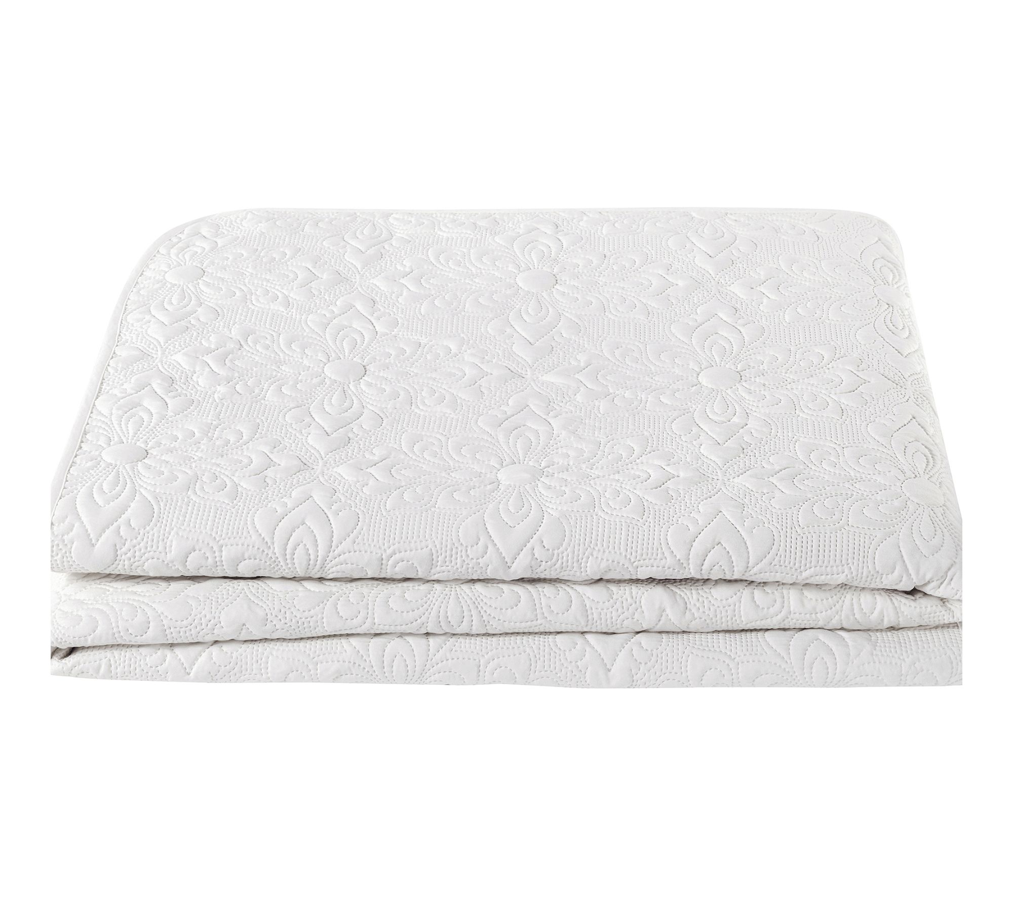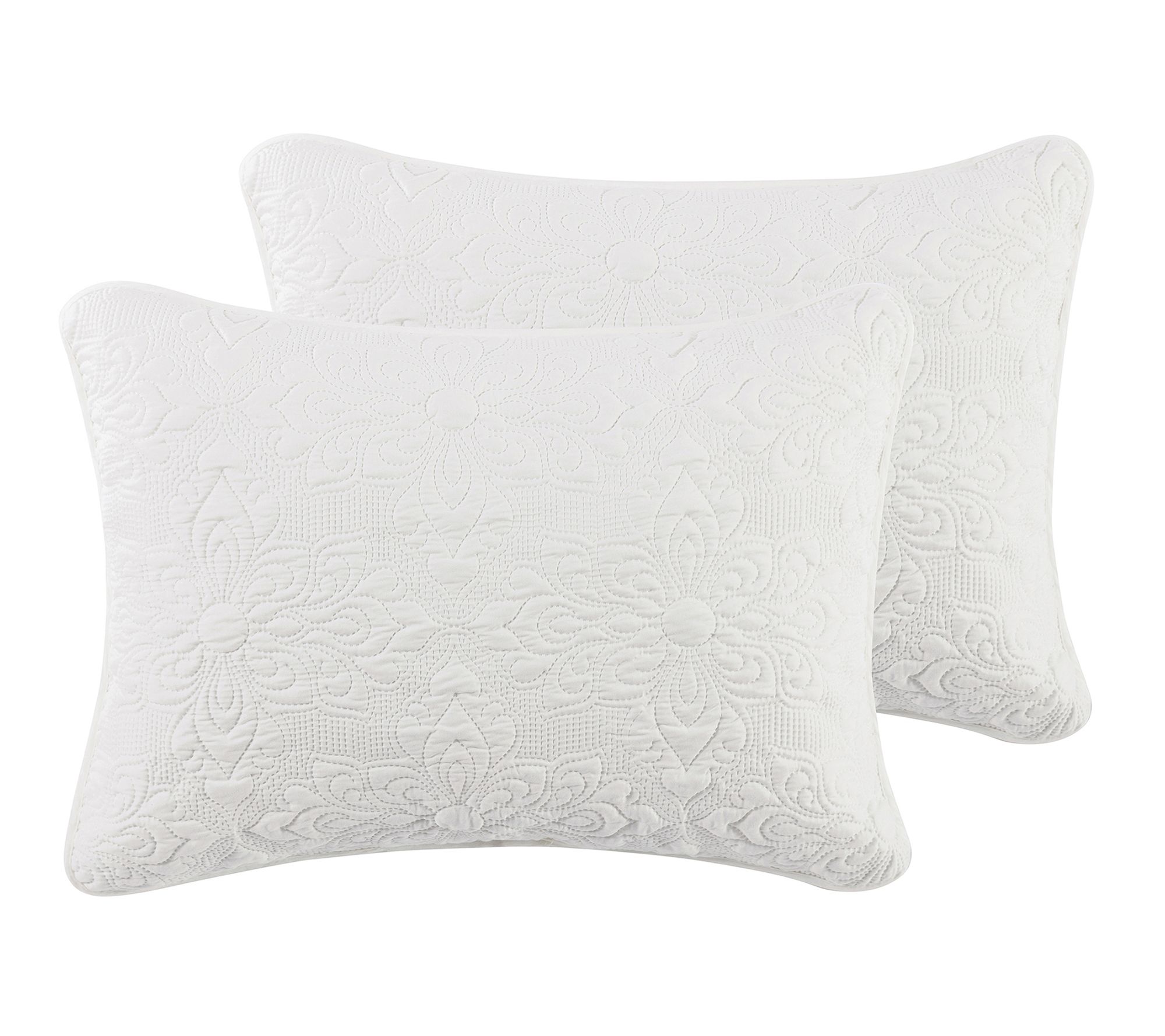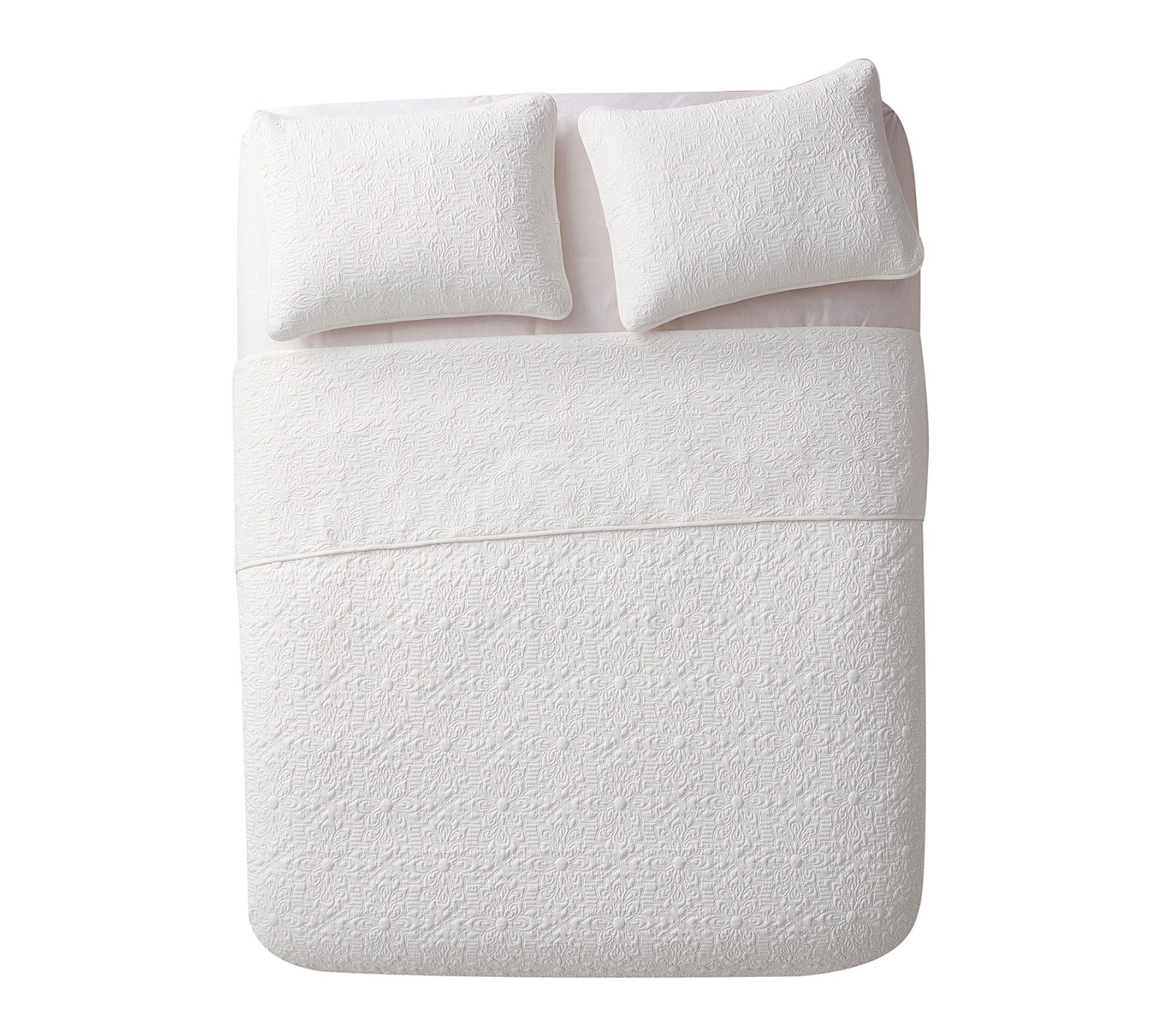 Refresh your retreat with the enchanting texture and softness of this quilt set, designed to envelop your king-sized bed in comfort. Intricately embossed with a graceful floral motif, it brings a touch of elegance and a soothing atmosphere to your space, perfect for lazy mornings or unwinding after a long day. From VCNY Home.