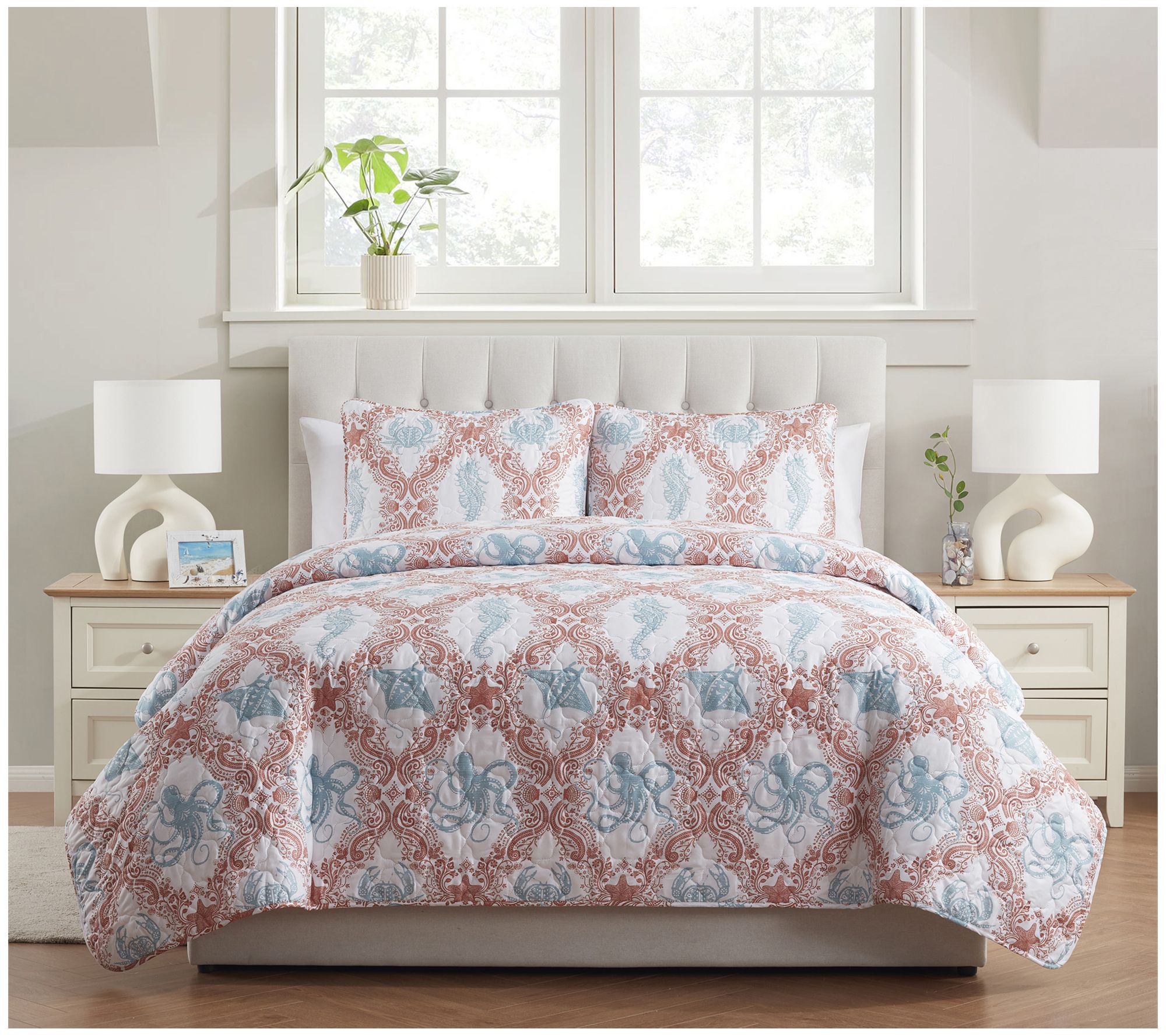 VCNY Home Coastal 3pc Sealife Quilt Set, Full/ueen