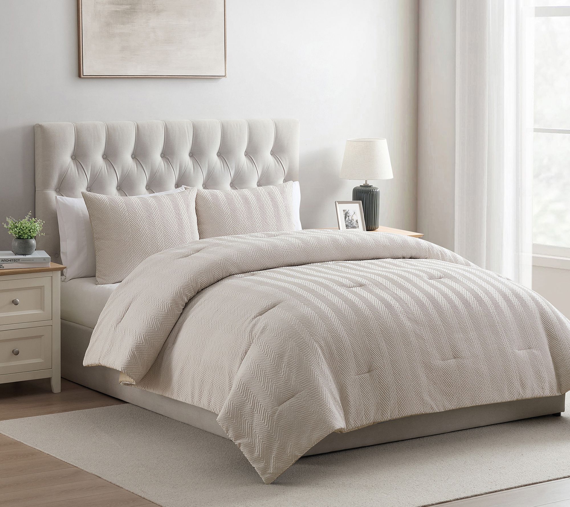 Bring a refined touch to your bedroom with this king-size comforter set, featuring a soft herringbone design that blends with any decor. Cozy microfiber fabric offers lasting comfort and easy care, making it a versatile choice for adults, children, or babies alike. The down alternative fill delivers warmth without added weight for restful nights. From VCNY Home.