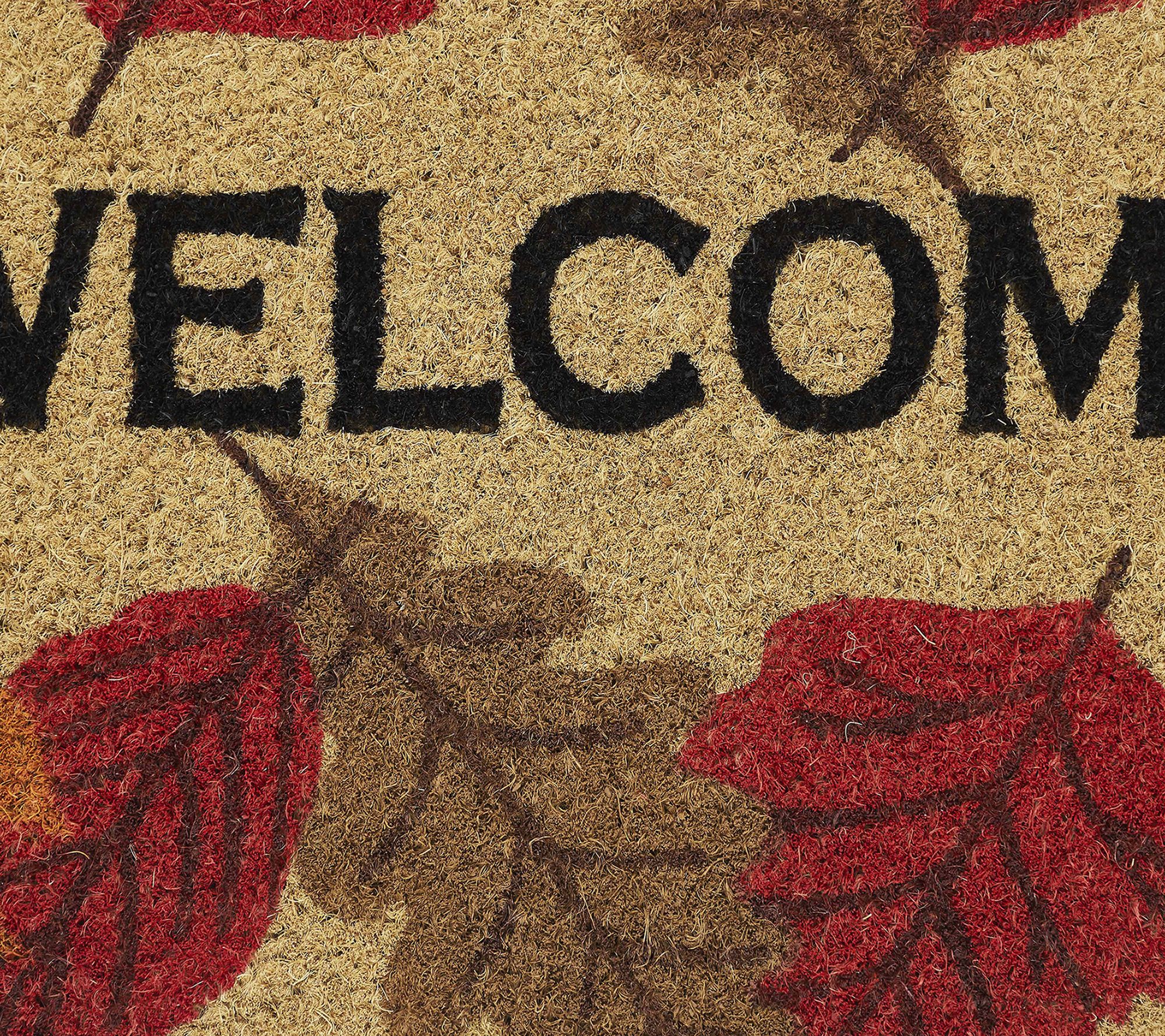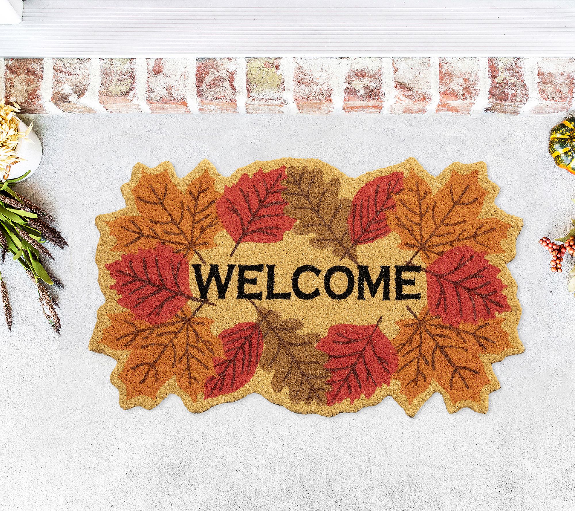 Add a festive touch to your entryway with this outdoor coir doormat, featuring vibrant fall leaves and a welcoming message. Its tough, textured surface helps keep dirt and dust outside, while the slip-resistant backing ensures it stays in place. The ideal accent for front, back, or side doors during the autumn season. From VCNY Home.