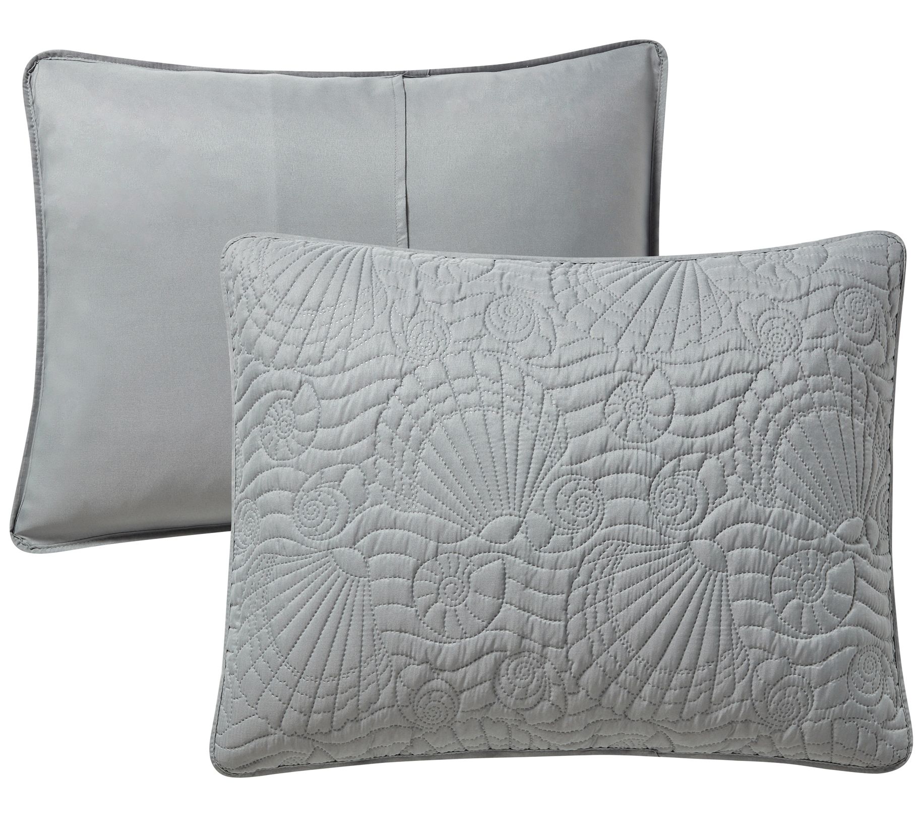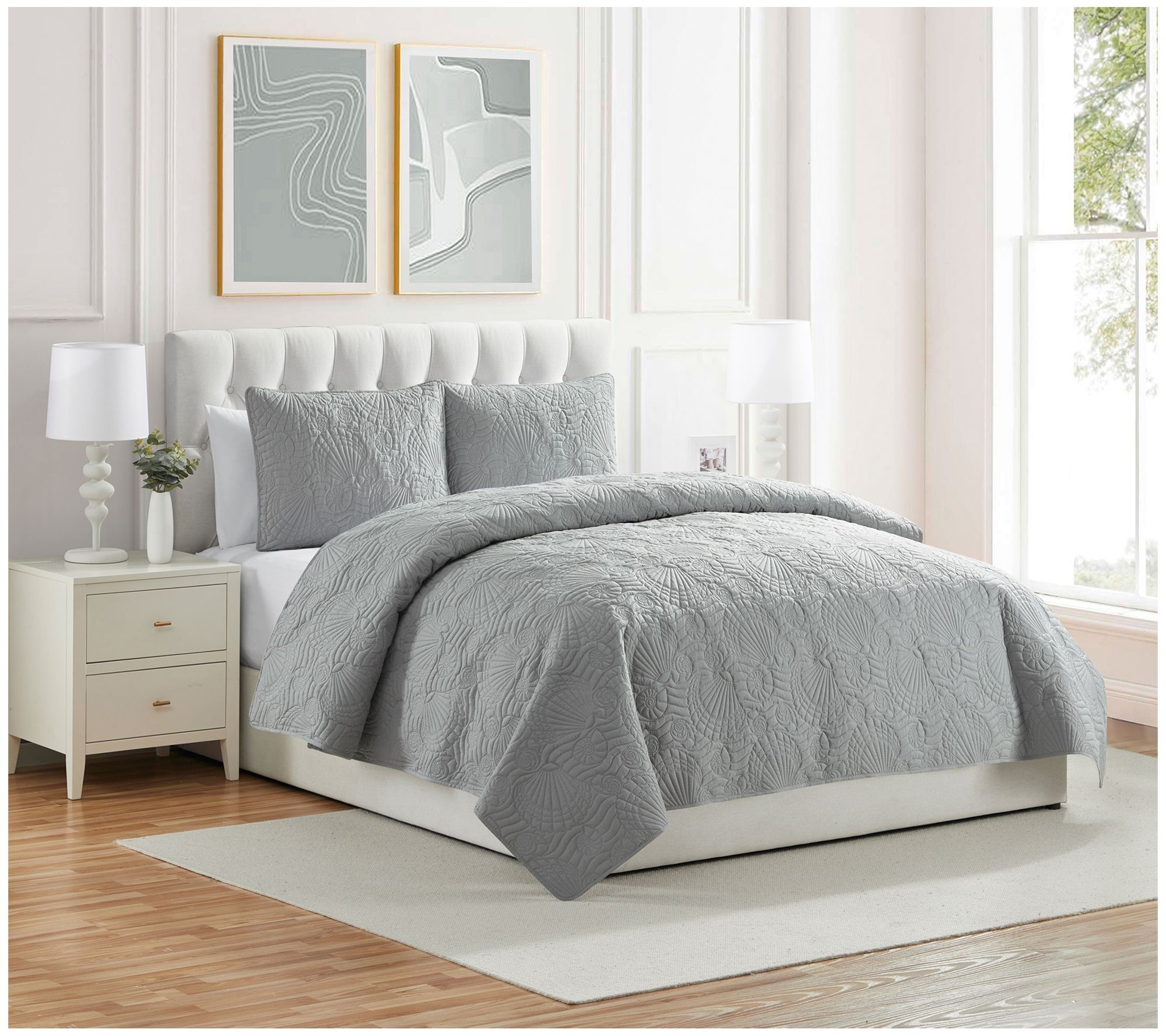 Dive into a serene sleep experience with this quilt set featuring pinsonic textured seashell patterns that bring a touch of coastal charm to any bedroom. From VCNY Home.