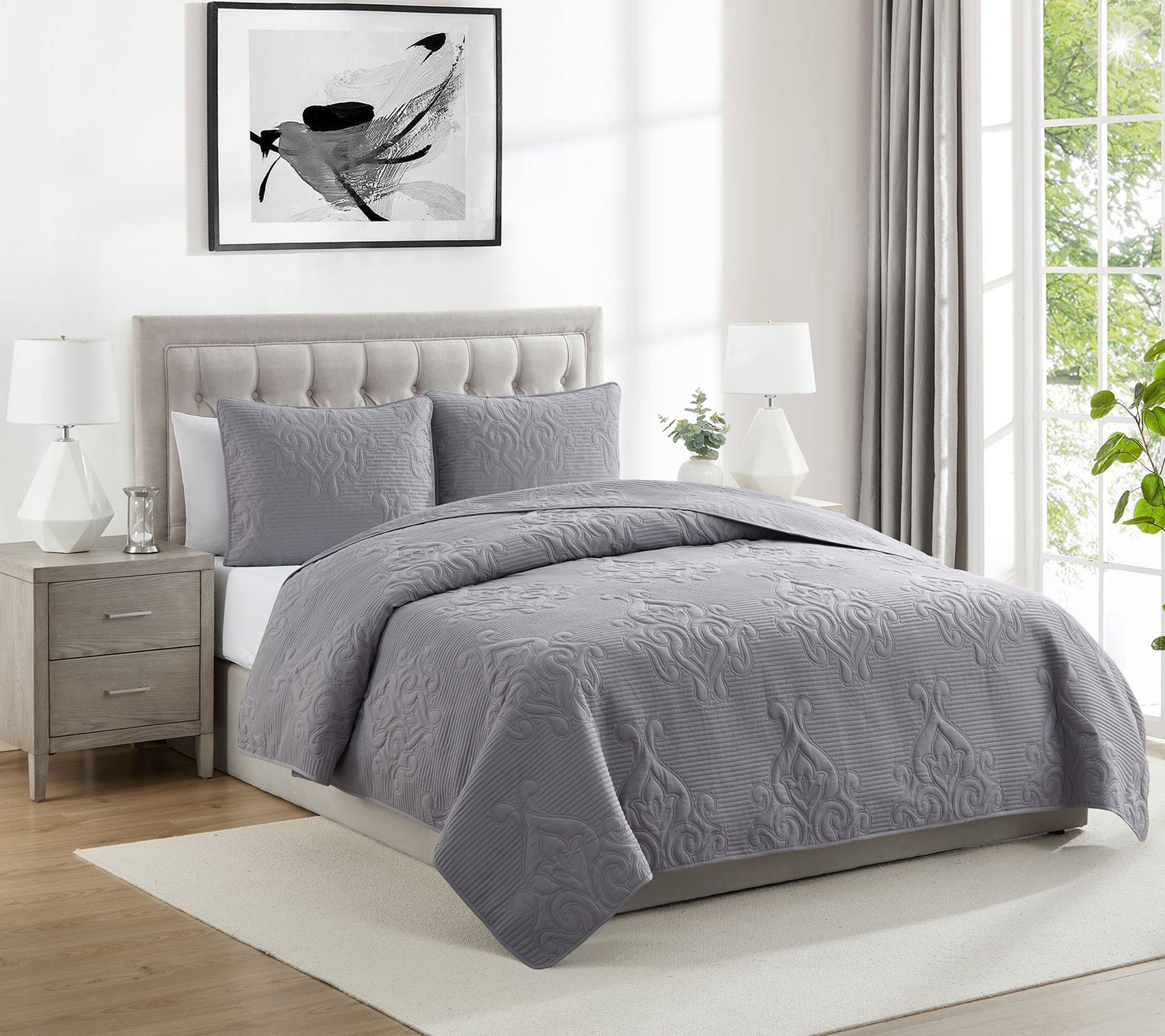 VCNY Home Solomun 3-Piece Damask Microfiber Quilt Set, King