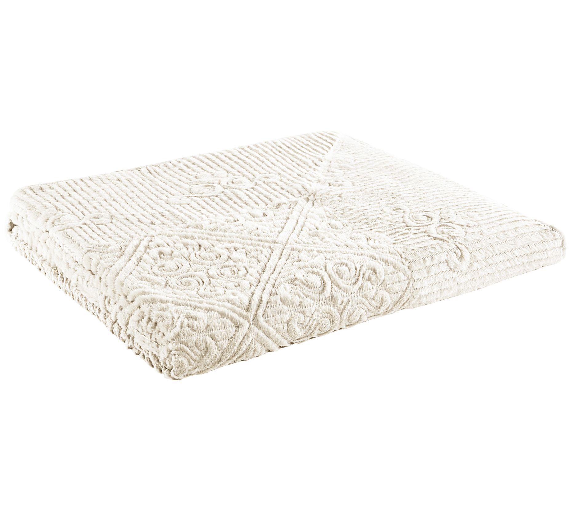 Designed with intricate embossing and soft, scalloped edges, the Westland quilted plush bedspread set adds subtle elegance to any bedroom. From VCNY Home.