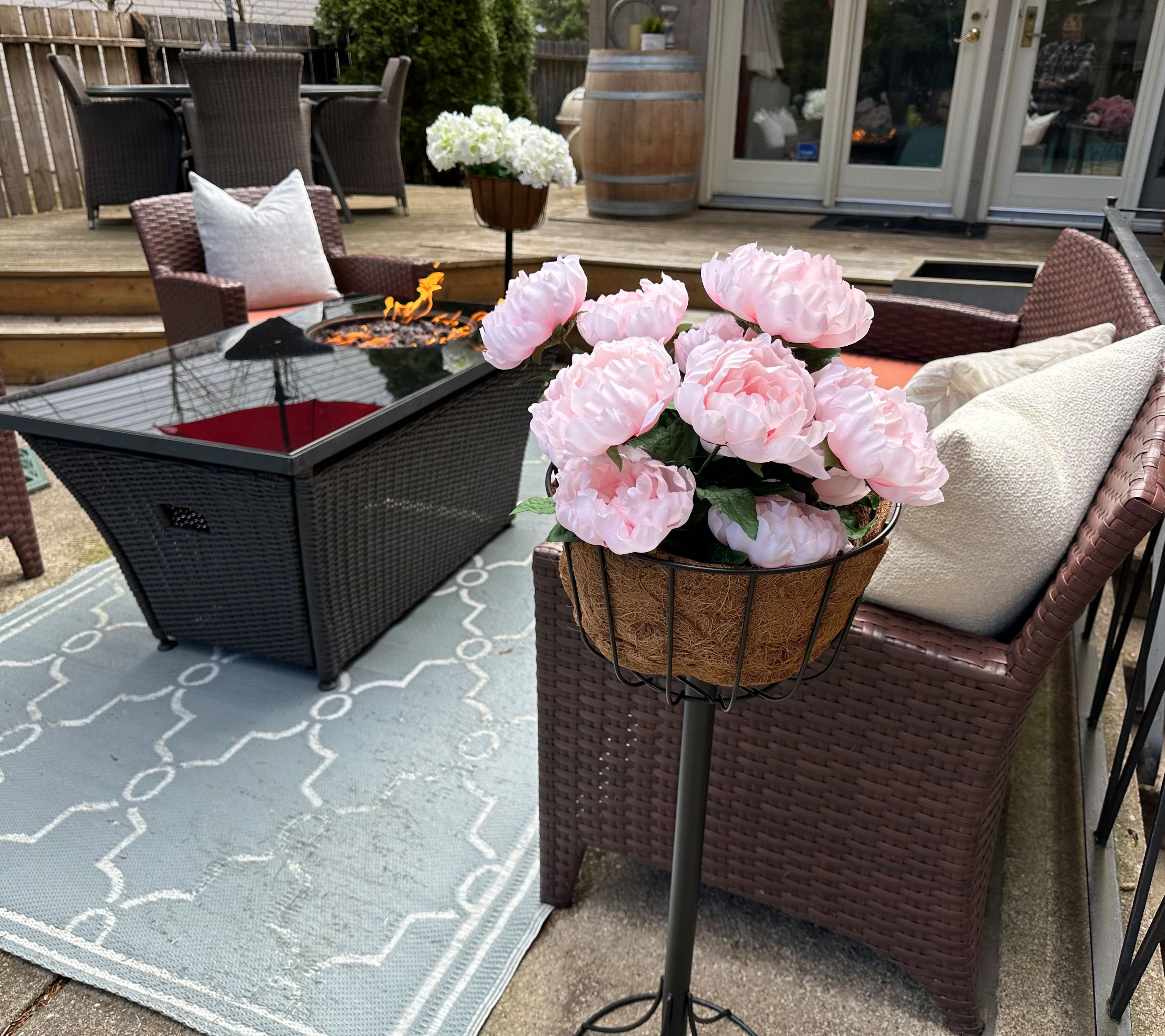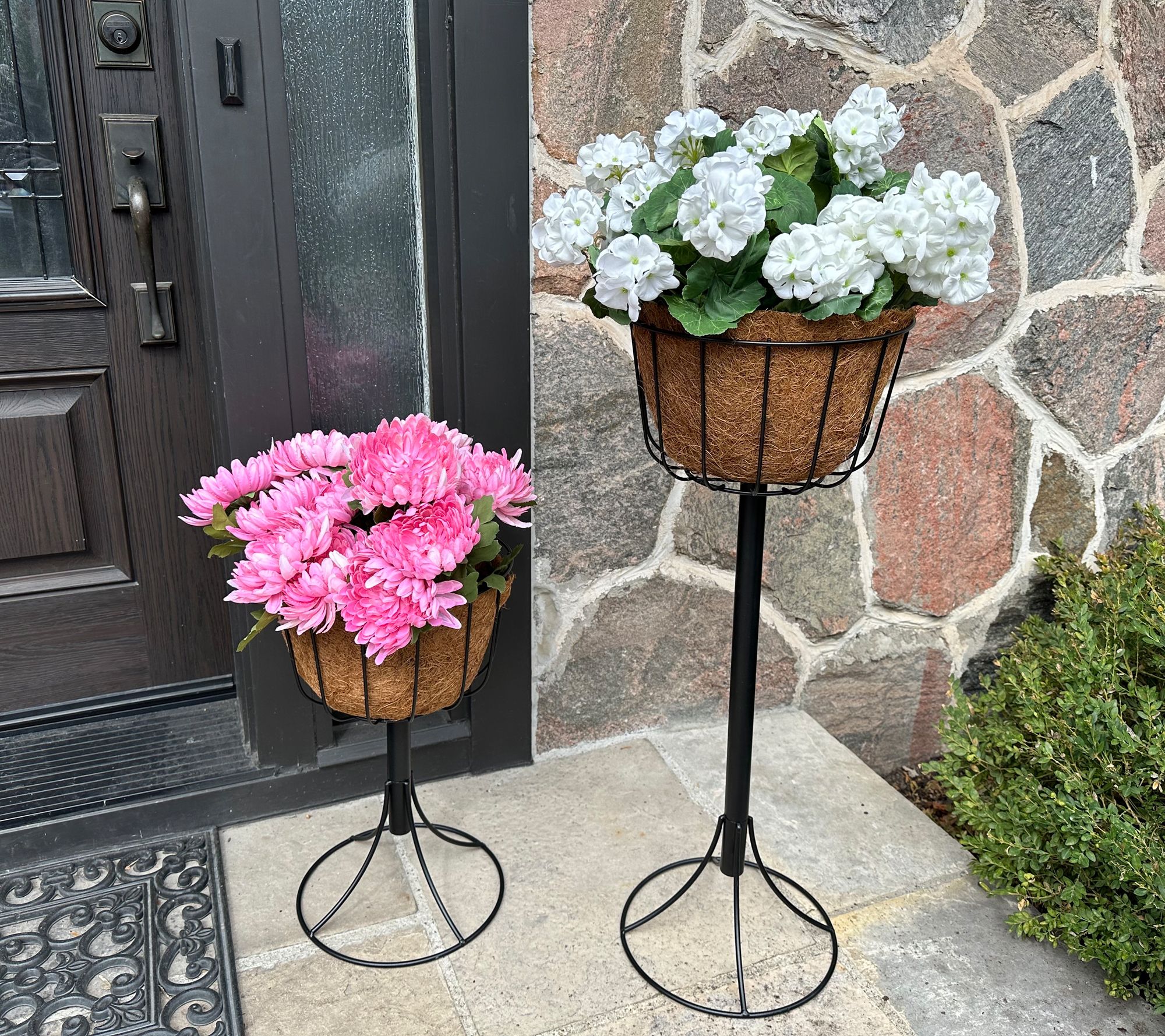 Includes metal planter with coco liner, hidden water reservoir, and reservoir tray