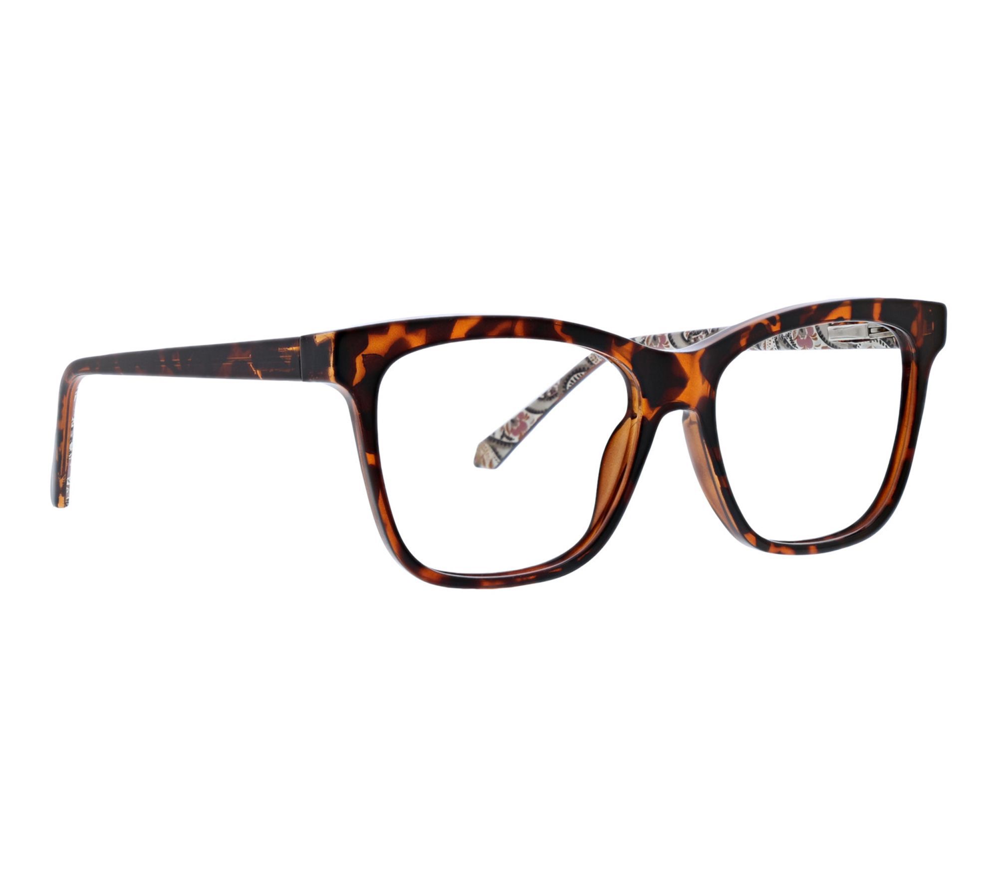 Whether you're reading your favorite novel or working at the computer, these Aspen blue light reading glasses offer comfort and style while helping shield your eyes from screen glare. The signature Vera Bradley print peeks out from the inside temple for a playful touch, and the included slip case keeps them protected wherever you go. From Vera Bradley.