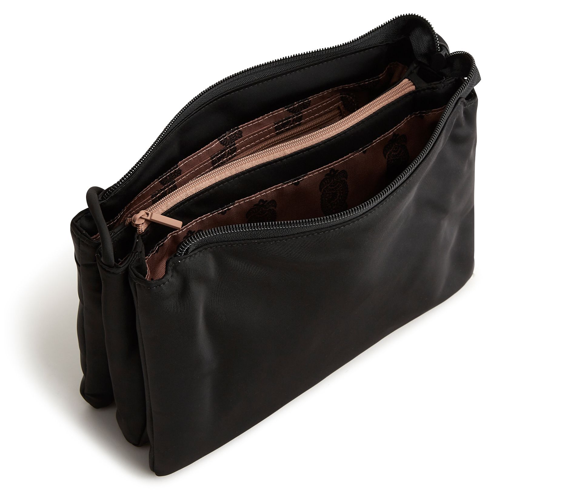 • Three internal compartments, zip closure