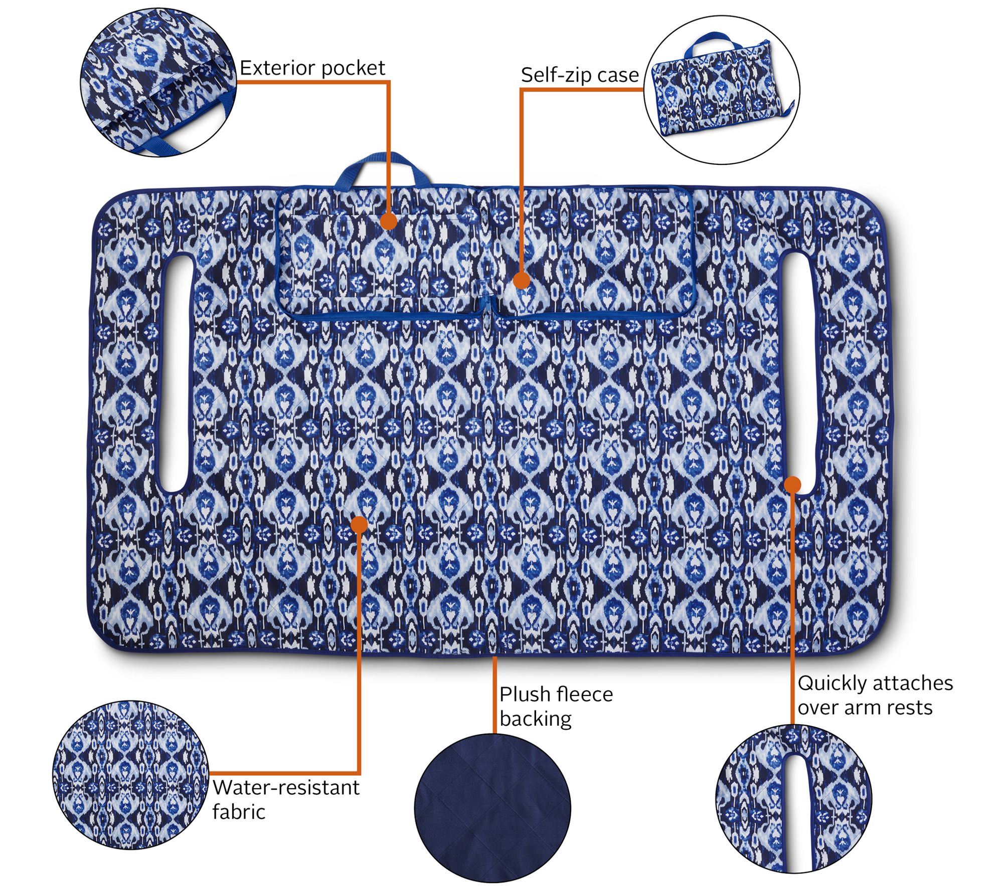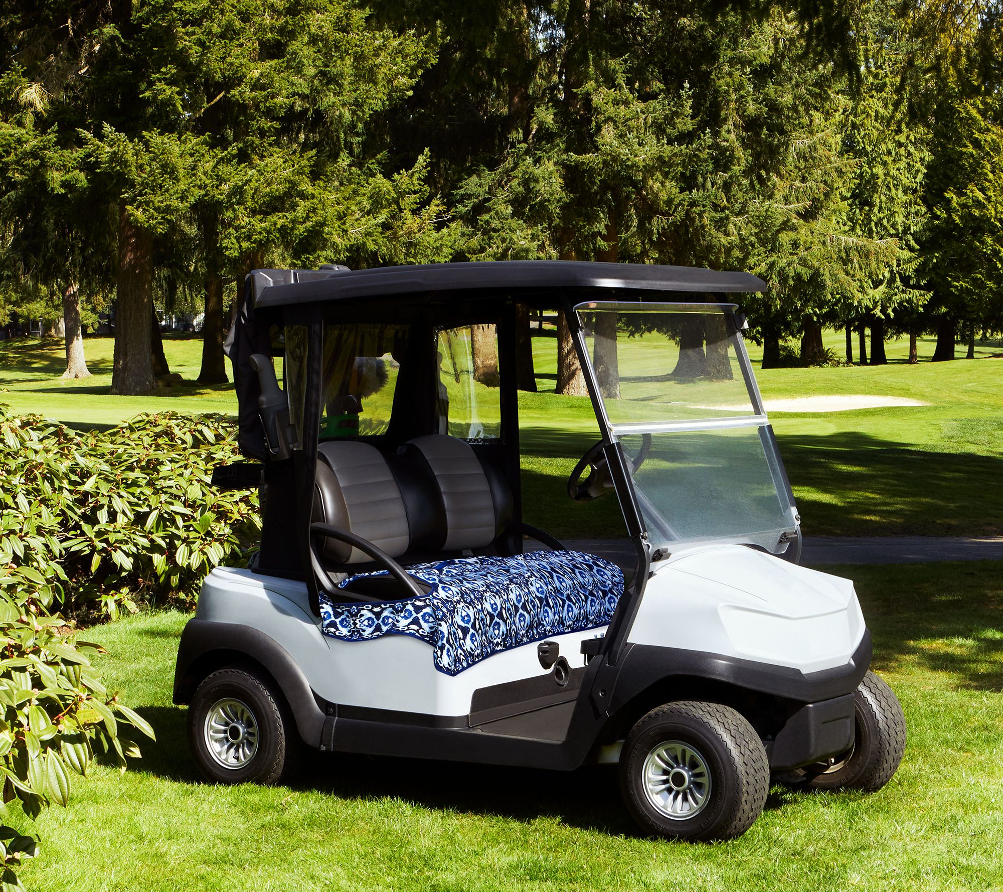 Keep comfy when you hit the links by attaching this seat blanket to your golf cart. It features plush fleece backing, an exterior storage pocket, and it zips down into its own travel case for easy transportation. From Vera Bradley.