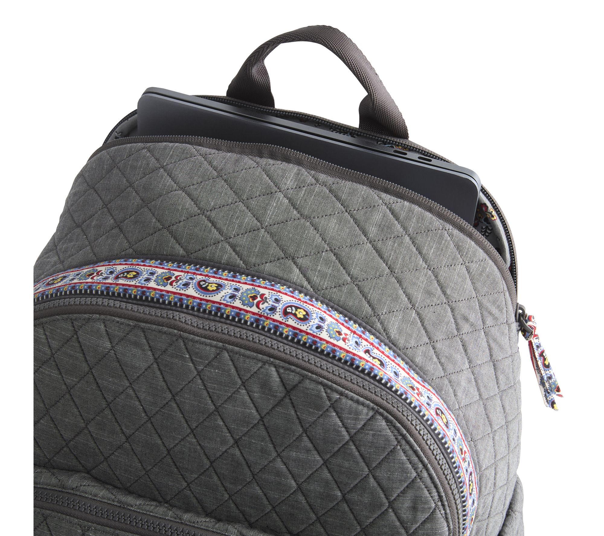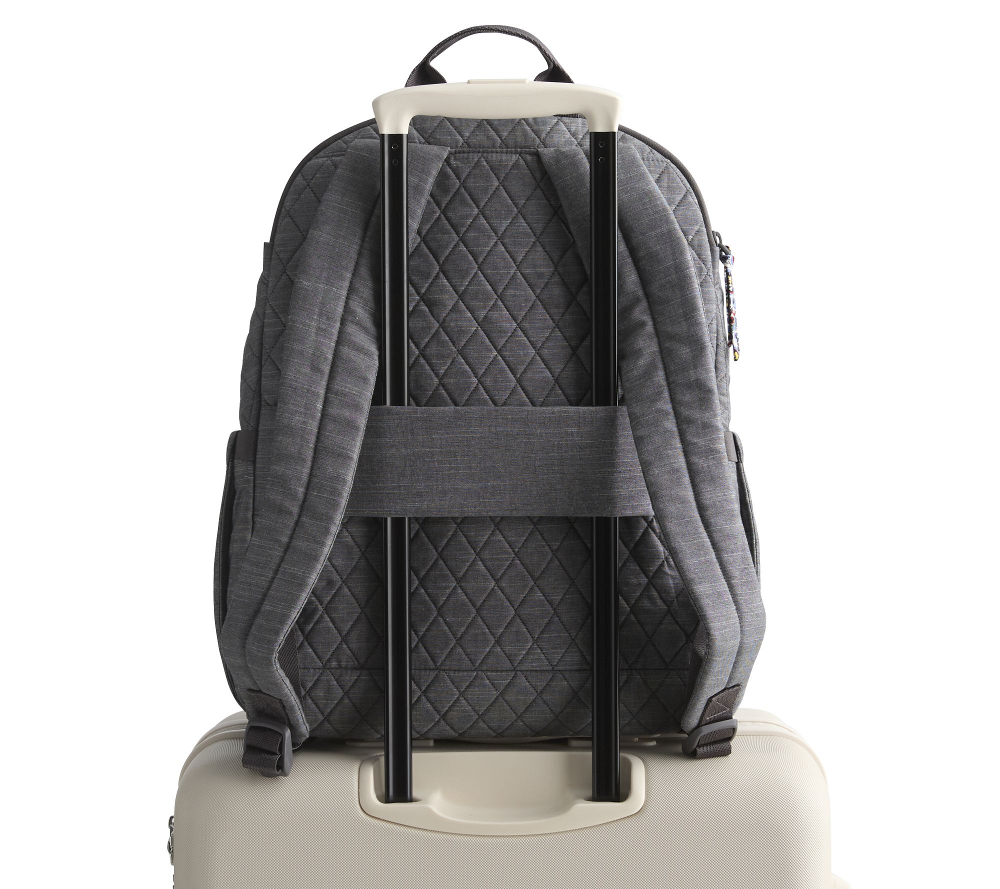 For busy days at work, school, or on the go, this Bancroft Backpack keeps essentials organized and close at hand with thoughtfully placed pockets and compartments. Its spacious design fits your laptop and daily must-haves, while adjustable straps and a trolley sleeve make travel smoother. The fabric construction and zip top closure add style and practicality to every adventure. From Vera Bradley.