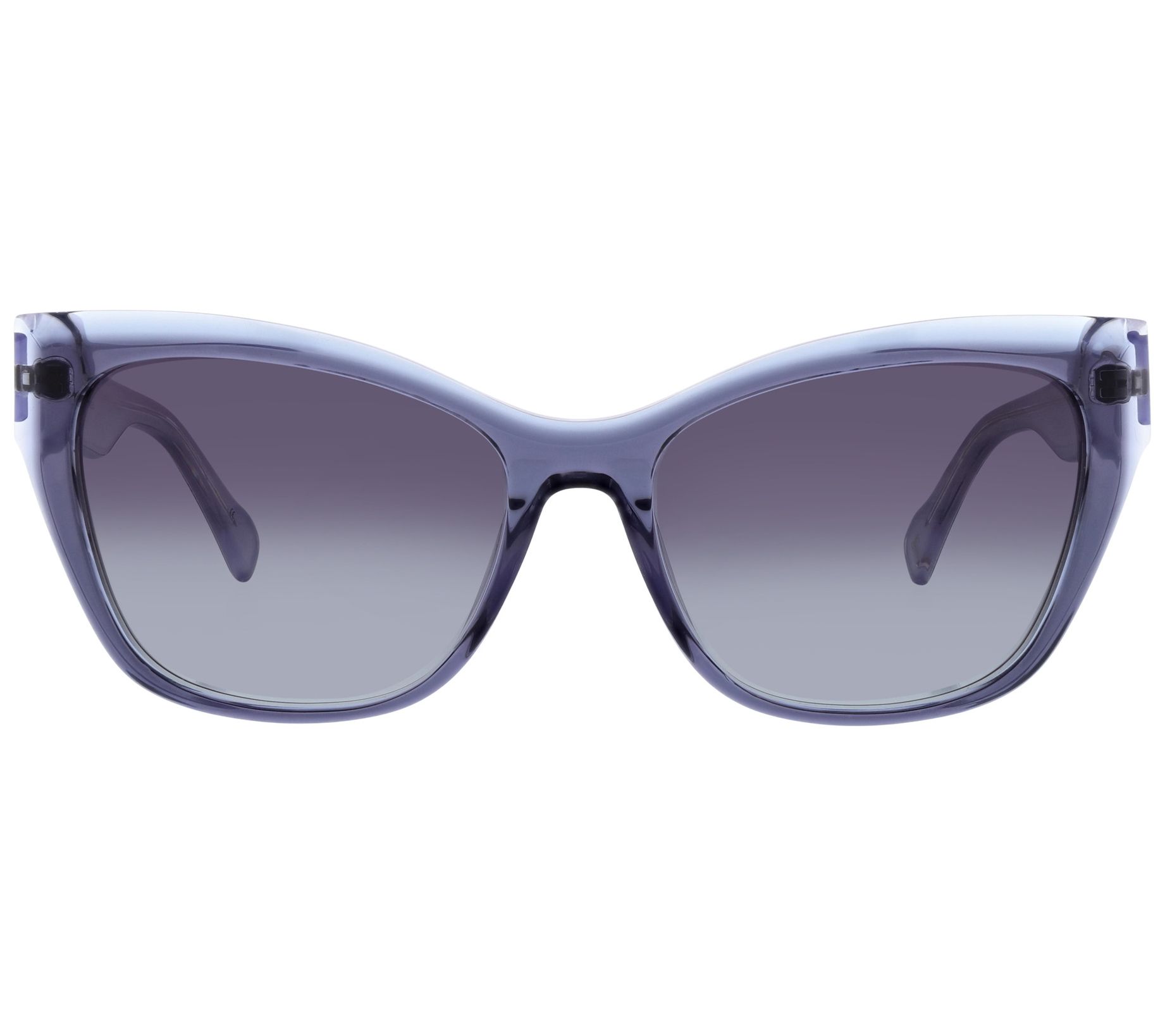 • Features: cat-eye style, signature print on inside temple, plastic frame, plastic polarized lenses