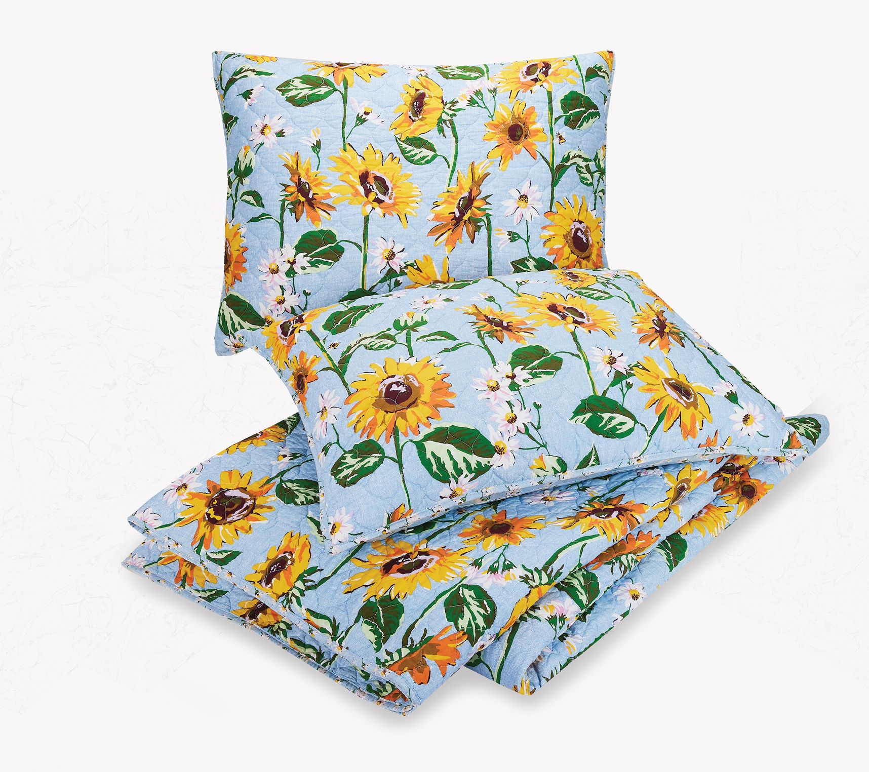 Enjoy a dreamy night's sleep when you snuggle into this super-soft king quilt set, featuring a design that's bursting with beautiful, bright sunflowers and delicate daisies, reversing to reveal a smaller tossed daisy print. From Vera Bradley.