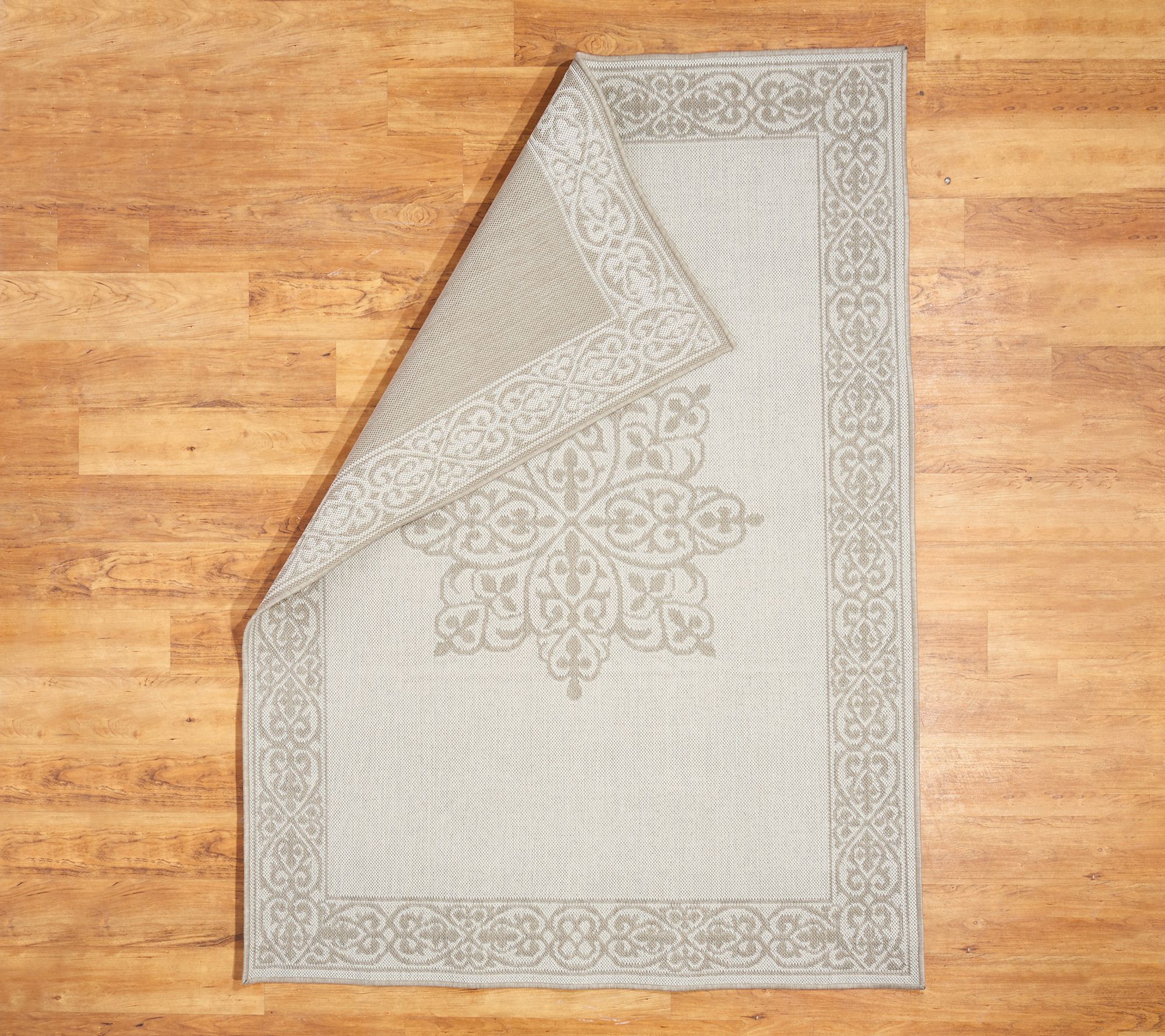 With a star medallion radiating from the center, this reversible rug highlights your home -- either indoors or out. From Veranda Living.